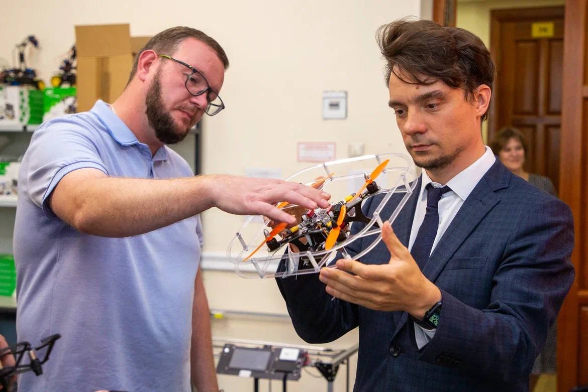 Наталия Александровна рассказала о богатой истории и достижениях Университета. Гости осмотрели педагогический технопарк «Кванториум имени И.В. Курчатова» и увидели радиоуправляемые модели учебных БПЛА в действии. О технических новинках и их применении рассказали директор технопарка Алексей Игоревич Крюков и его заместитель Алексей Николаевич Хаулин.