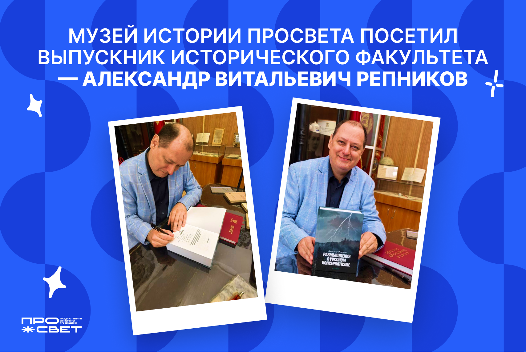 Александр Витальевич стал участником акции по сбору экспонатов для Музея и подарил Просвету свою книгу, в которой целый раздел посвящён родному Университету!