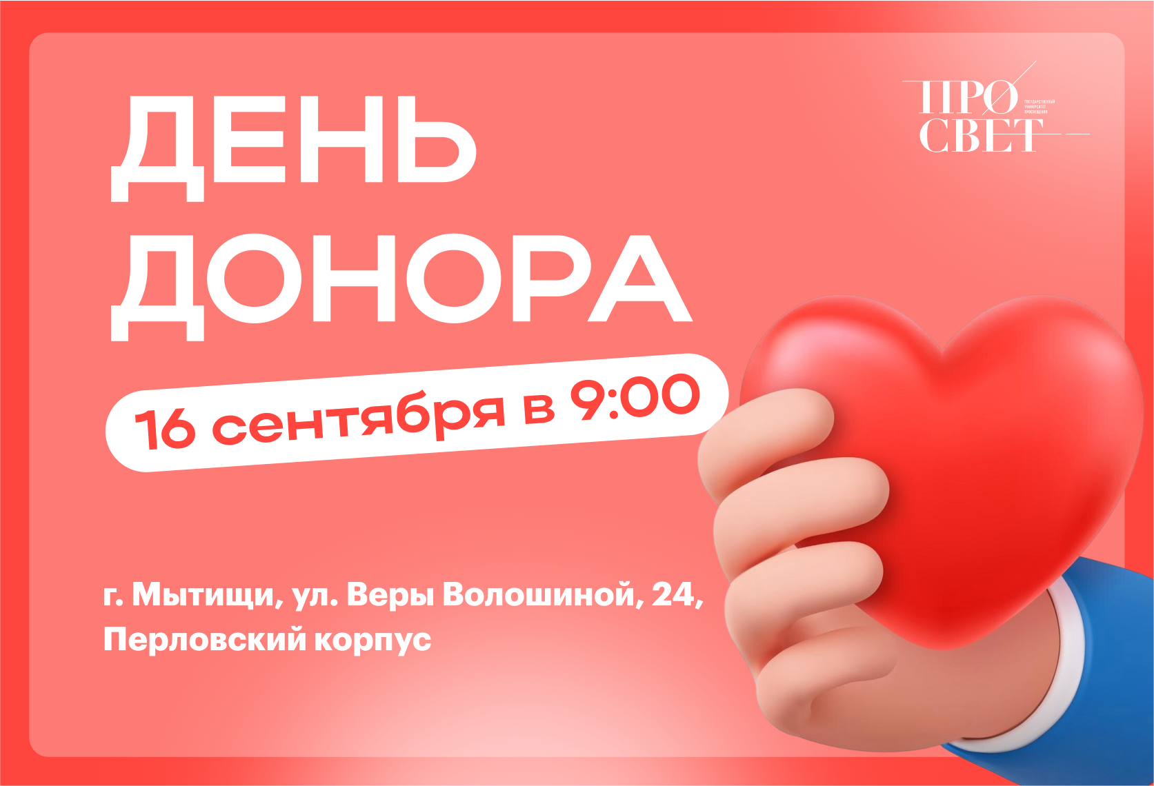На площадке Просвета День Донора пройдёт: