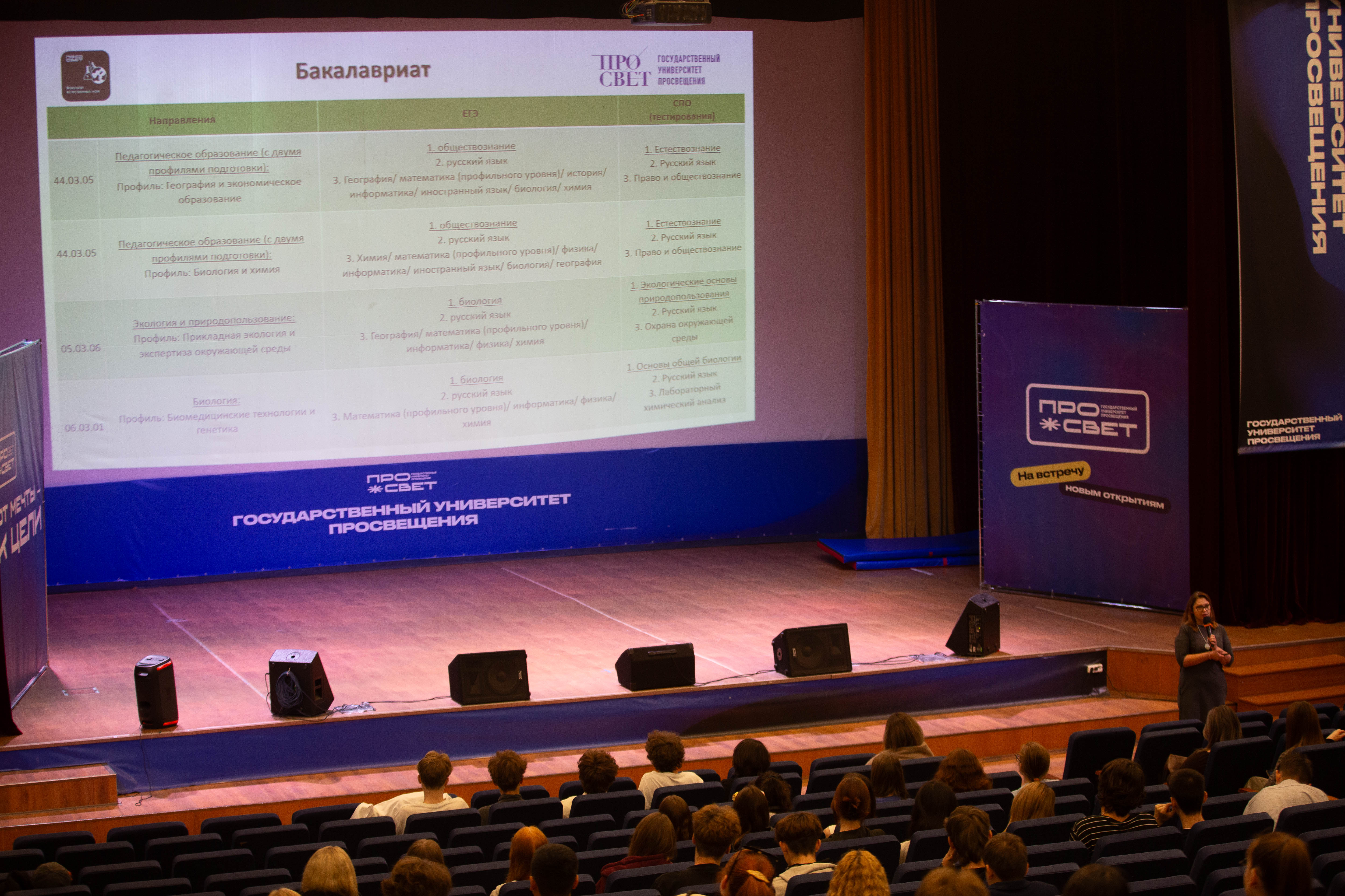 Встречу открыла заместитель декана Елена Владимировна Никифорова. Она рассказала об обучении на факультете и перспективах естественно-научных специальностей.