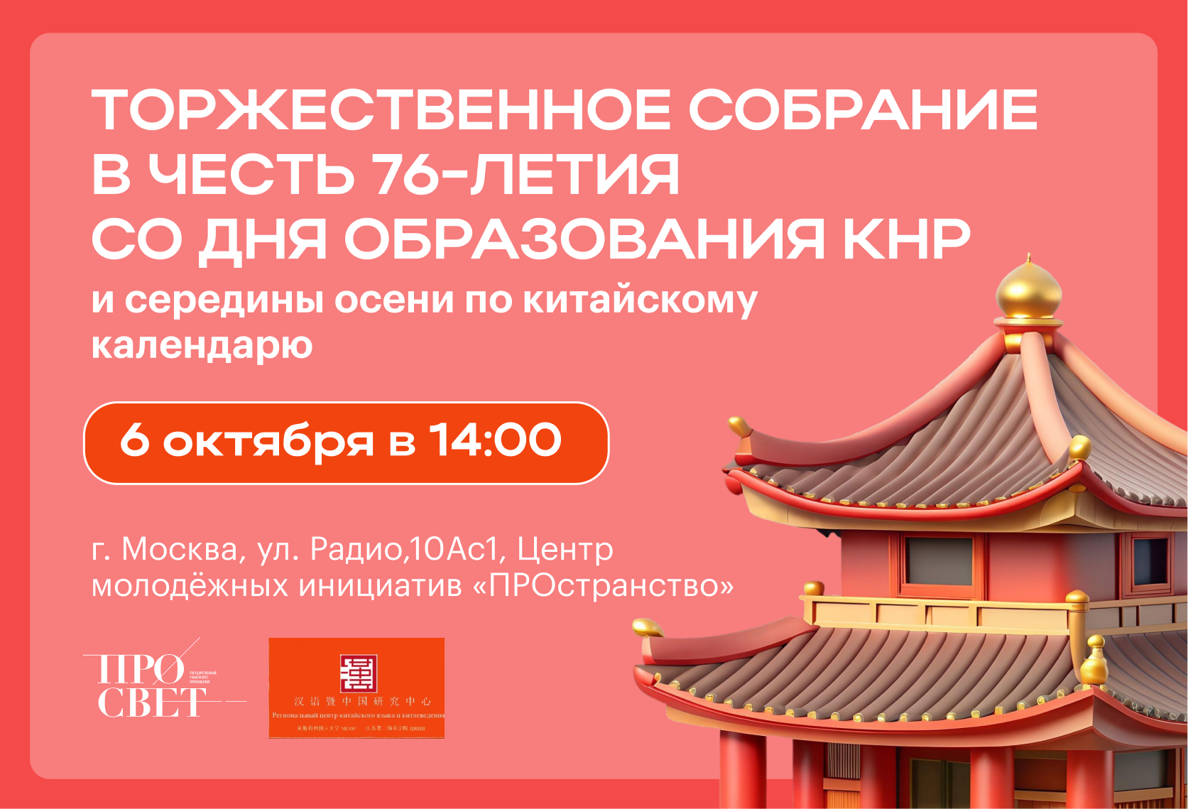 Начало октября в Университете просвещения станет особенно ярким! Для студентов и преподавателей пройдёт торжественное собрание в честь 76 годовщины со дня образования КНР и середины осени по китайскому календарю.