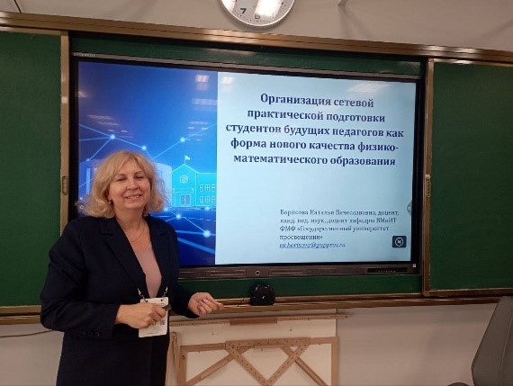 — доцент кафедры вычислительной математики и информационных технологий Наталья Вячеславовна Борисова — «Организация сетевой практической подготовки студентов будущих педагогов как форма нового качества физико-математического образования».