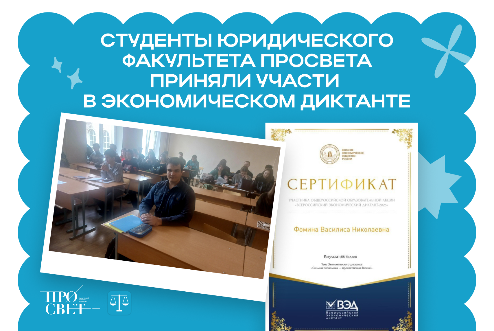14 октября студенты юридического факультета Просвета приняли участие в IX Всероссийском экономическом диктанте, который в этом году проходил в онлайн-формате.