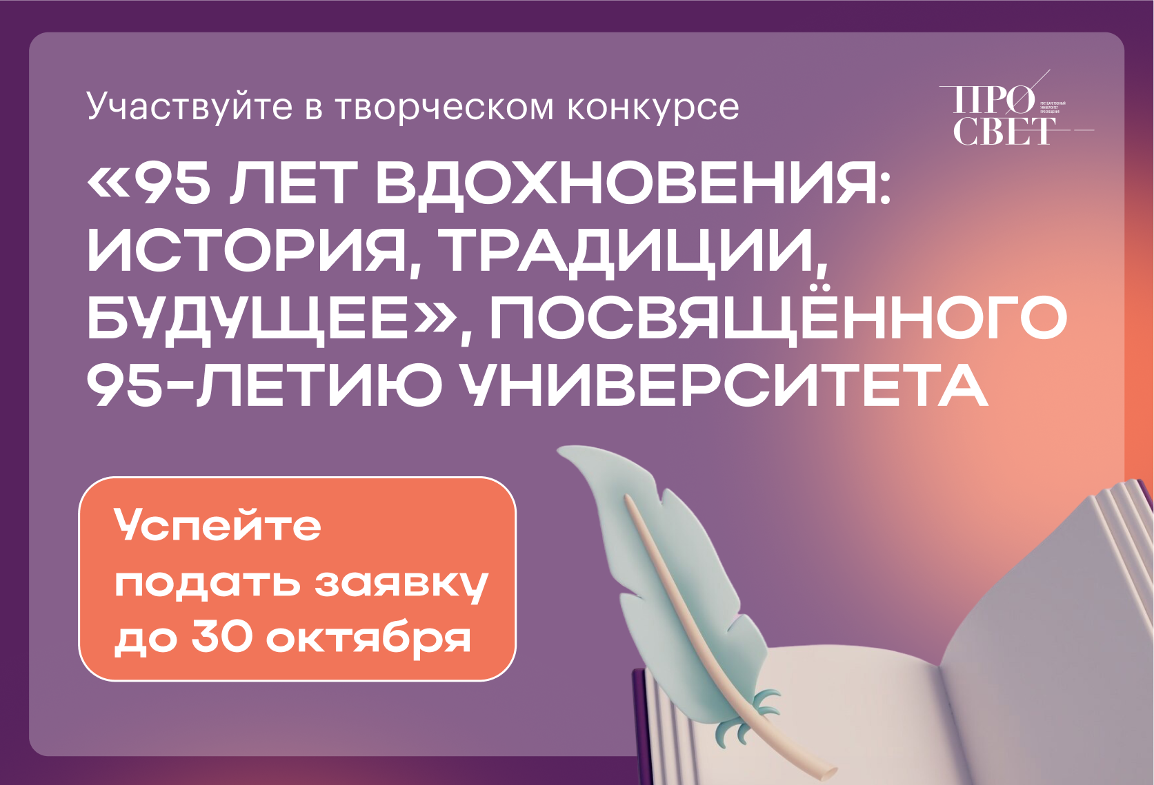 А вы уже знаете о многожанровом творческом конкурсе «95 лет вдохновения: история, традиции, будущее», посвящённого 95-летию Университета?