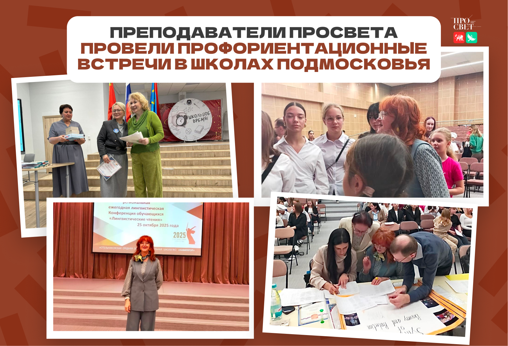 А уже 25 октября они приняли участие в IV региональной конференции «Лингвистические чтения» в школе №2 г.о. Котельники — в качестве членов жюри и докладчиков. Они рассказали о преимуществах обучения Просвете и возможностях, которые открывает лингвистическое образование.