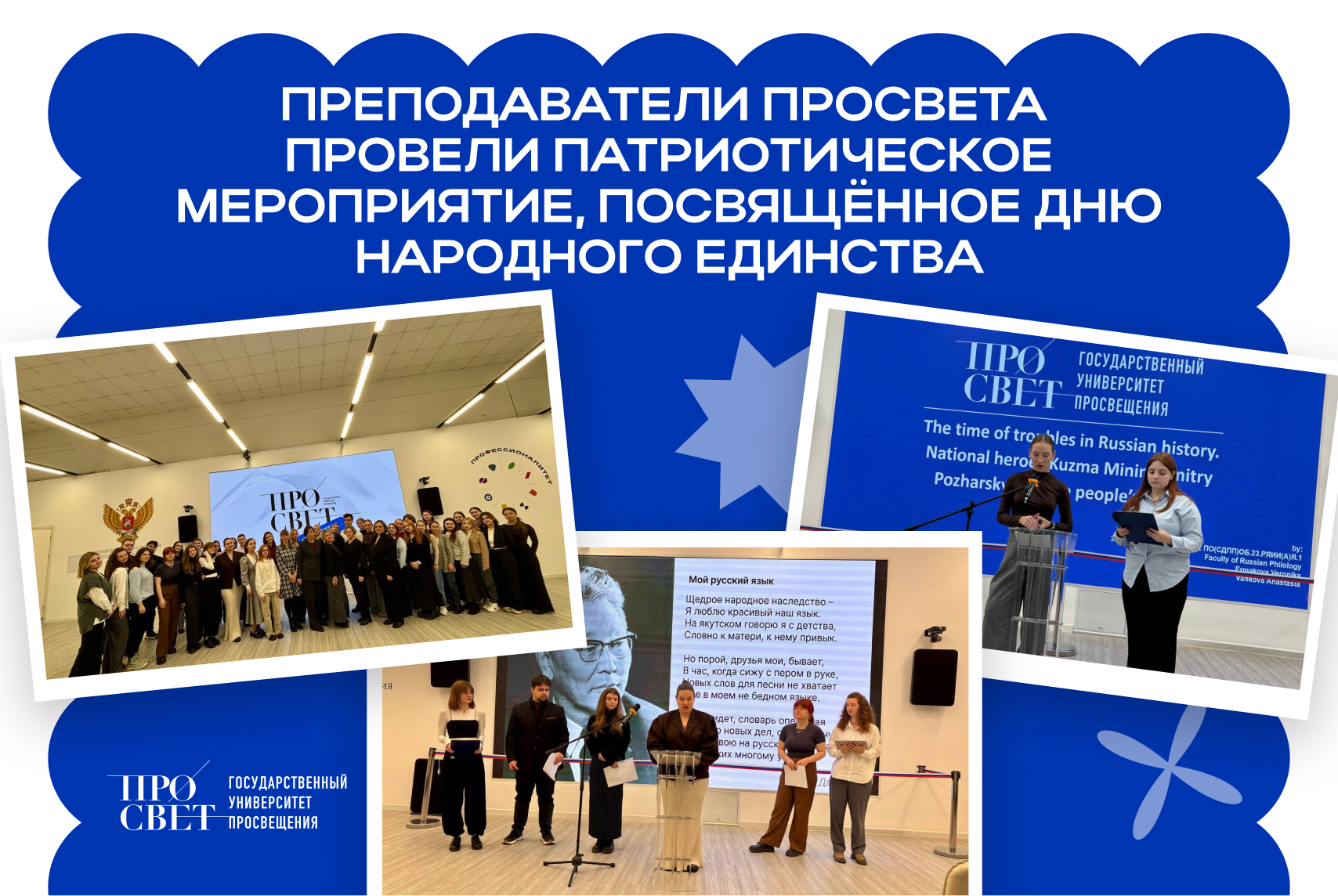 Накануне знаменательного события кафедра иностранных языков со студентами факультета русской филологии, экономического и истории, политологии и права провела патриотическое мероприятие «Вместе мы — сила».