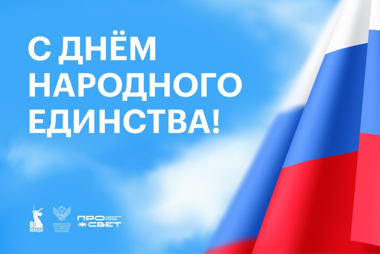 Сегодня мы отмечаем День народного единства! Это праздник, который позволяет каждому из нас почувствовать себя частью великой страны, ощутить её величие и особую миссию