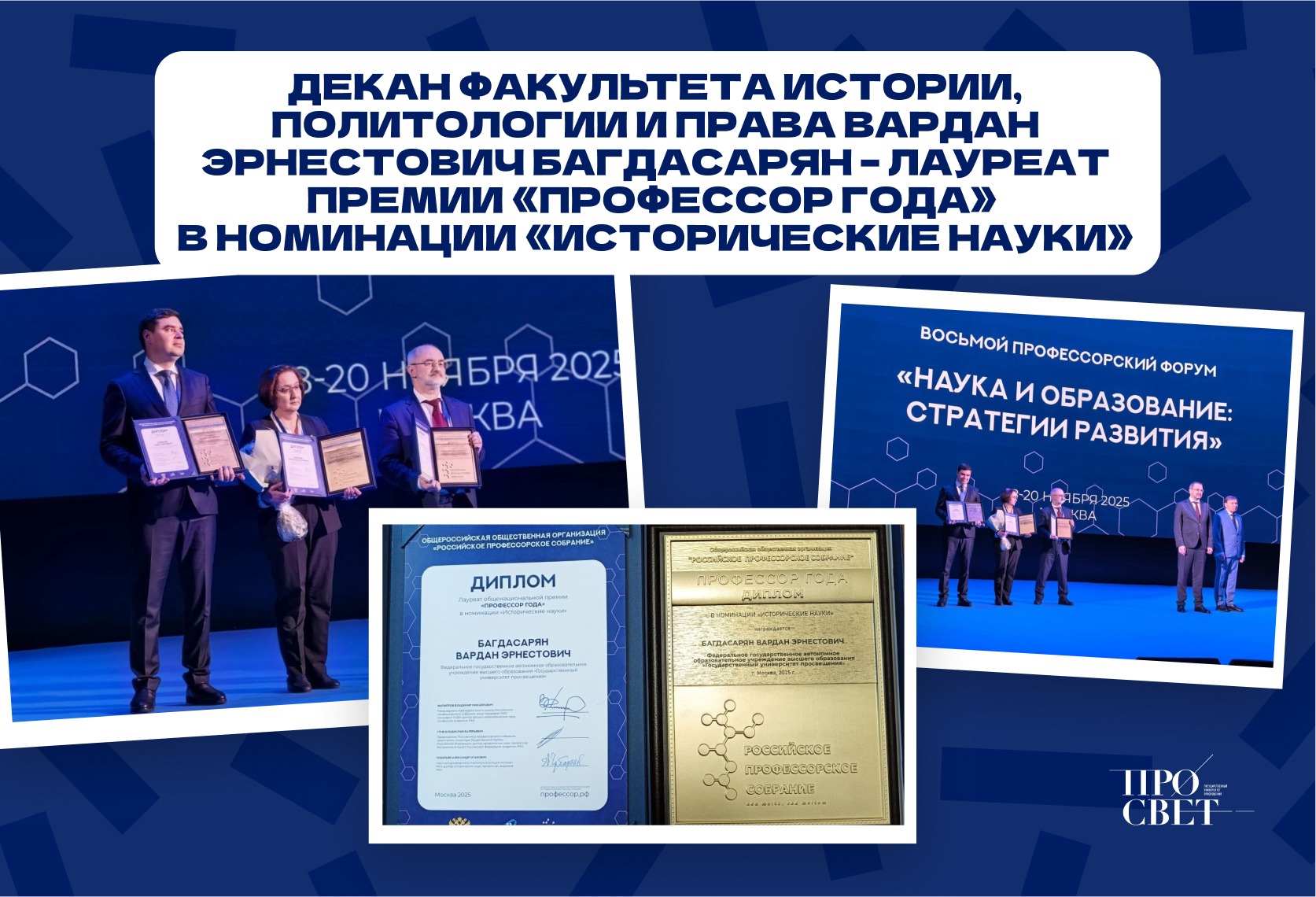 Награждение прошло в рамках Восьмого профессорского форума «Наука и образование: стратегии развития». Его организует Российское профессорское собрание при поддержке Министерства науки и высшего образования России.