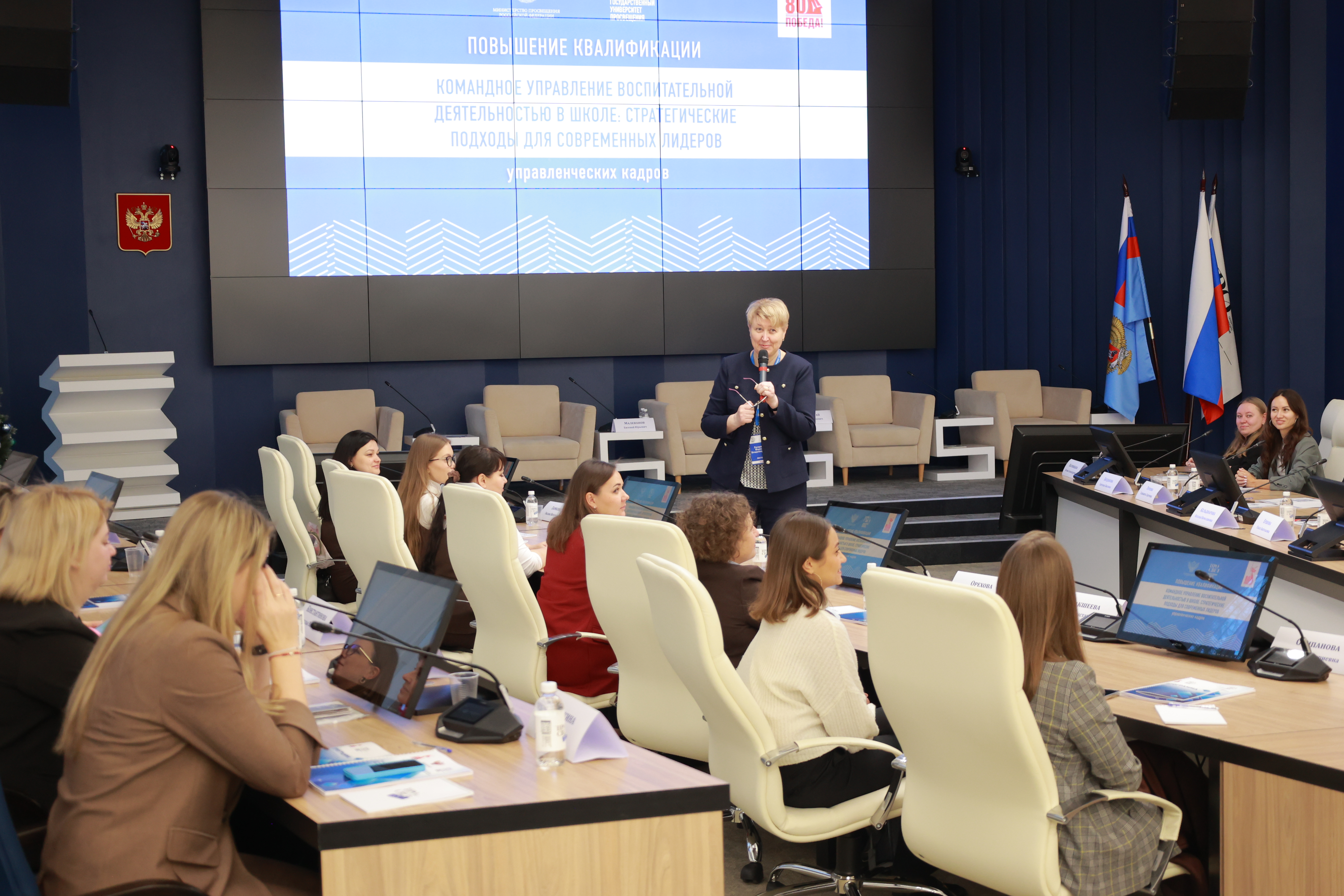 В Государственном университете просвещения дан старт очной части программы повышения квалификации «Командное управление воспитательной деятельностью в школе: стратегические подходы для современных лидеров». Мероприятие проходит на базе Института реализации государственной политики и профессионального развития работников образования Просвета, где 19 ноября собрались 32 руководителя и их заместителя по воспитательной работе из шести регионов России.