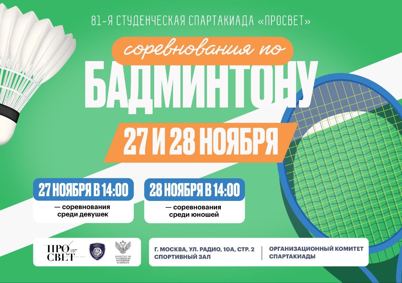 Уже скоро в Просвете стартует открытая 81-ая студенческая Спартакиада «ПРОСВЕТ». Её откроют соревнования по бадминтону.