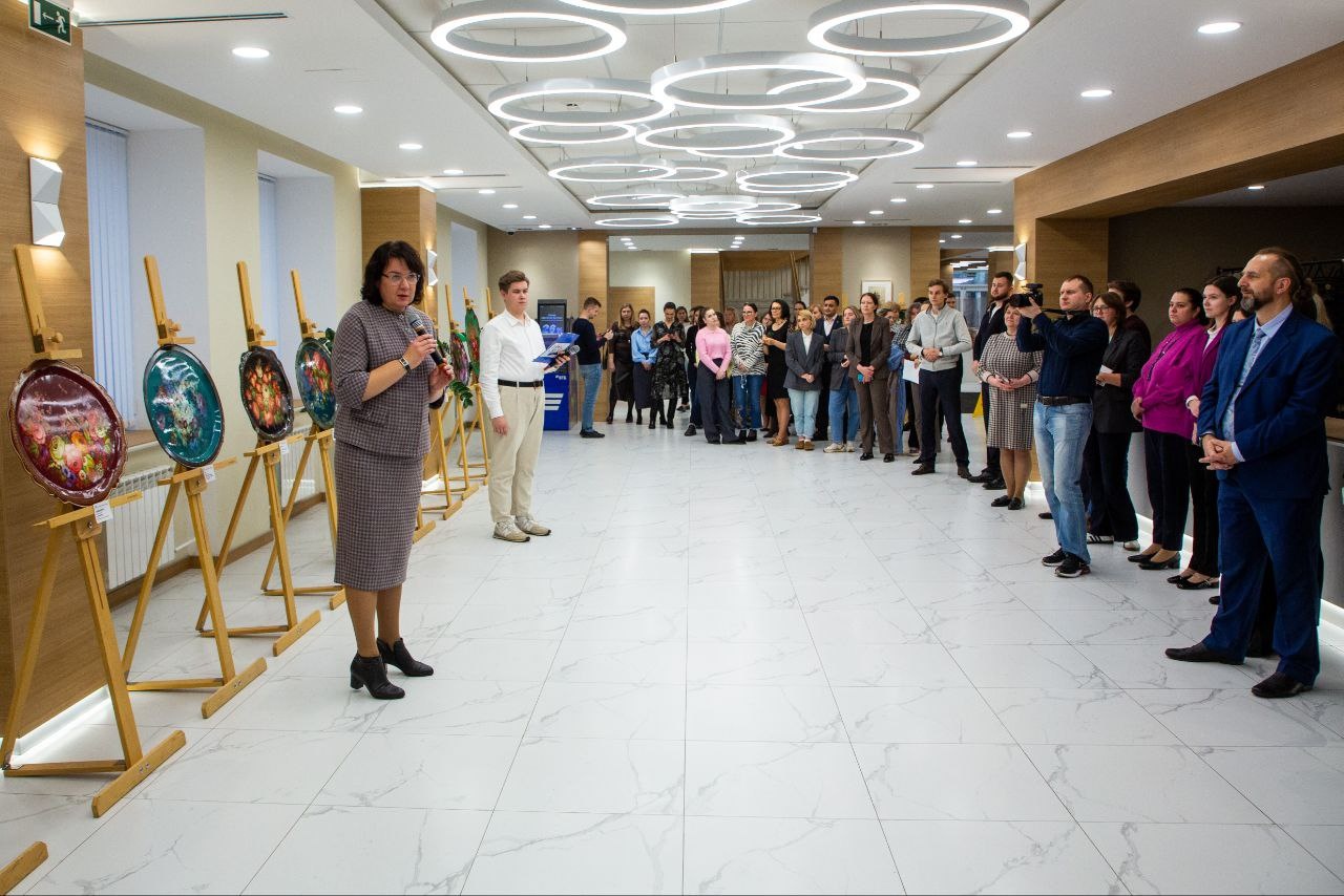 «Мы открываем выставку Жостовской фабрики декоративной росписи. Здесь представлены работы студентов, подготовка которых проходит через призму духовно-нравственных ценностей. Занимаясь росписью, они изучают природу и тем самым духовно обогащаются. Открытие удивительной экспозиции решает важную задачу по воспитанию и просвещению нашего молодого поколения», — отметила Ольга Павловна Колударова. Ректор Университета Наталия Александровна Наумова поблагодарила Министерство просвещения России за поддержку и отметила большой труд педагогов и студентов, которые создают образы, ставшие визитной карточкой нашей страны.