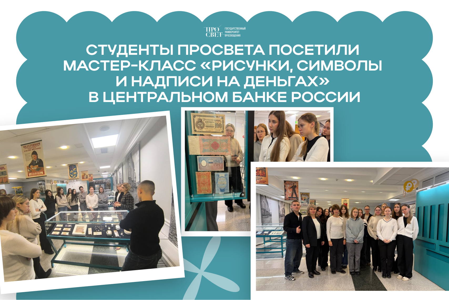 Студентыэкономического факультетапод руководством наставников Ирины Васильевны Кузнецовой, Татьяны Андреевны Гусевой и Анны Юрьевны Истратий посетили мастер-класс «Рисунки, символы и надписи на деньгах» вЦентральном банке России.