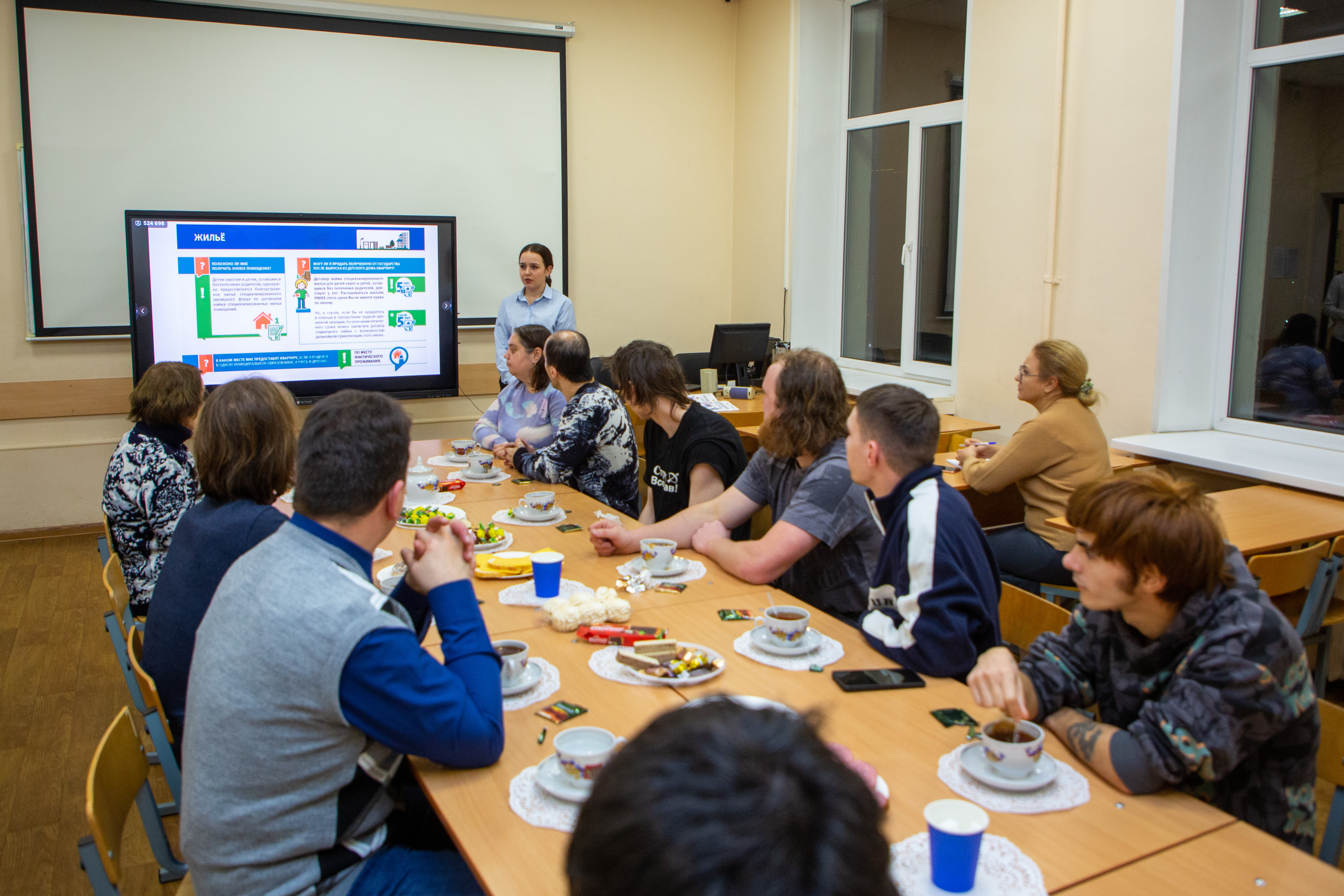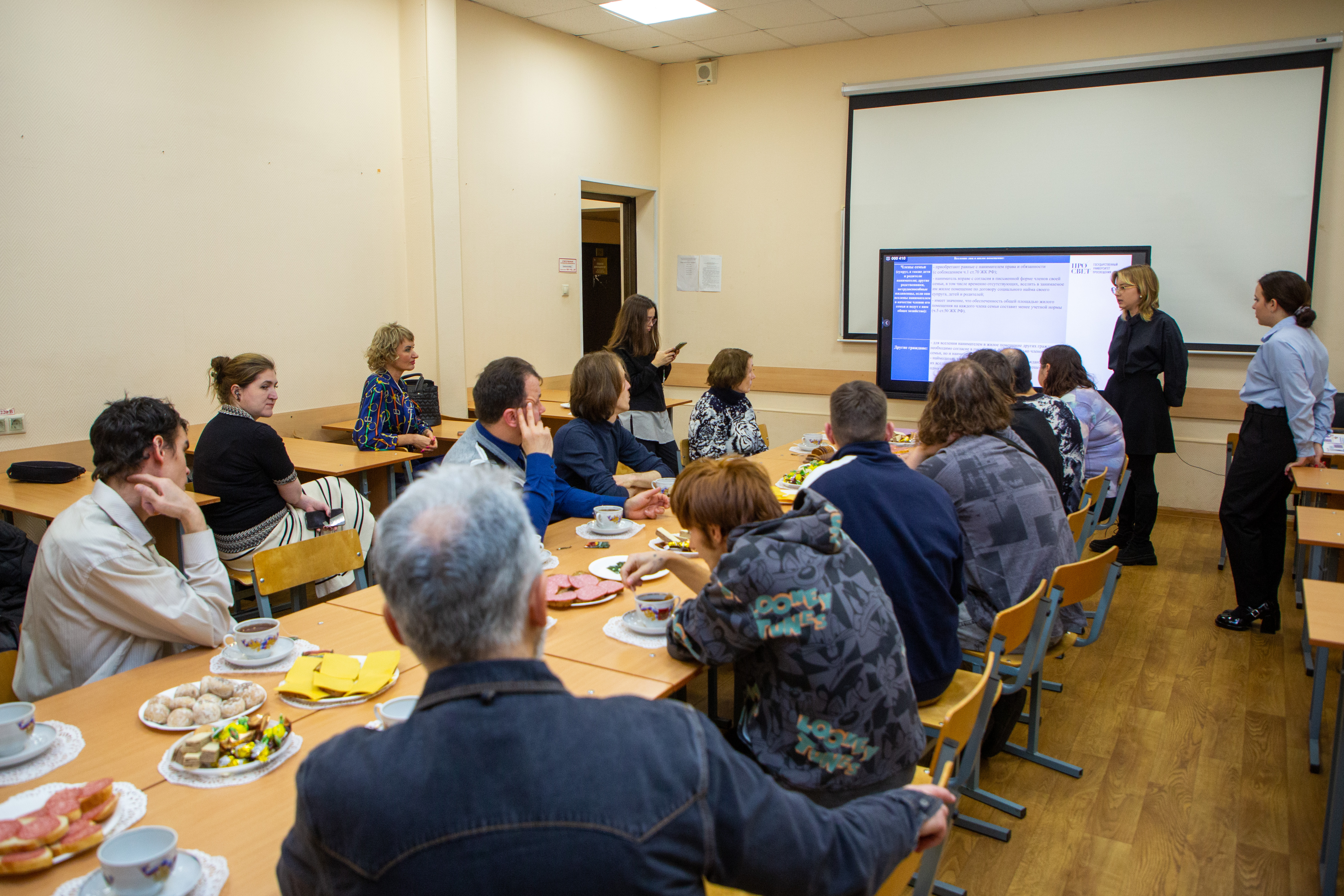 Студенты под кураторством преподавателей факультета: доцента кафедры конституционного и гражданского права, кандидата юридических наук Ольги Фёдоровны Фаст и доцента кафедры уголовного права, уголовного процесса и криминалистики, кандидат юридических наук Дианы Аполлоновны Квицинии подготовили доклады на интересующие выпускников детских домов и ПНИ вопросы: кто должен оплачивать коммунальные услуги, что делать, если соседи очень громко слушают музыку, кого и в каких случаях можно зарегистрировать в своей квартире. Участники обсудили вопросы приватизации жилья, совершения сделок с квартирой, возможность возврата неправомерно взысканных сумм в счёт коммунальных платежей, содержание животных в жилом помещении и многие другие.