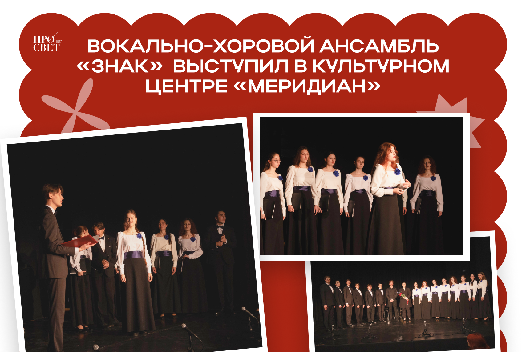 Культурный центр «Меридиан» объединил поклонников Вокально-хорового ансамбля «Знак» Университета просвещения. Концерт «Фонтан любви, фонтан живой» погрузил публику в чарующую атмосферу мелодий.