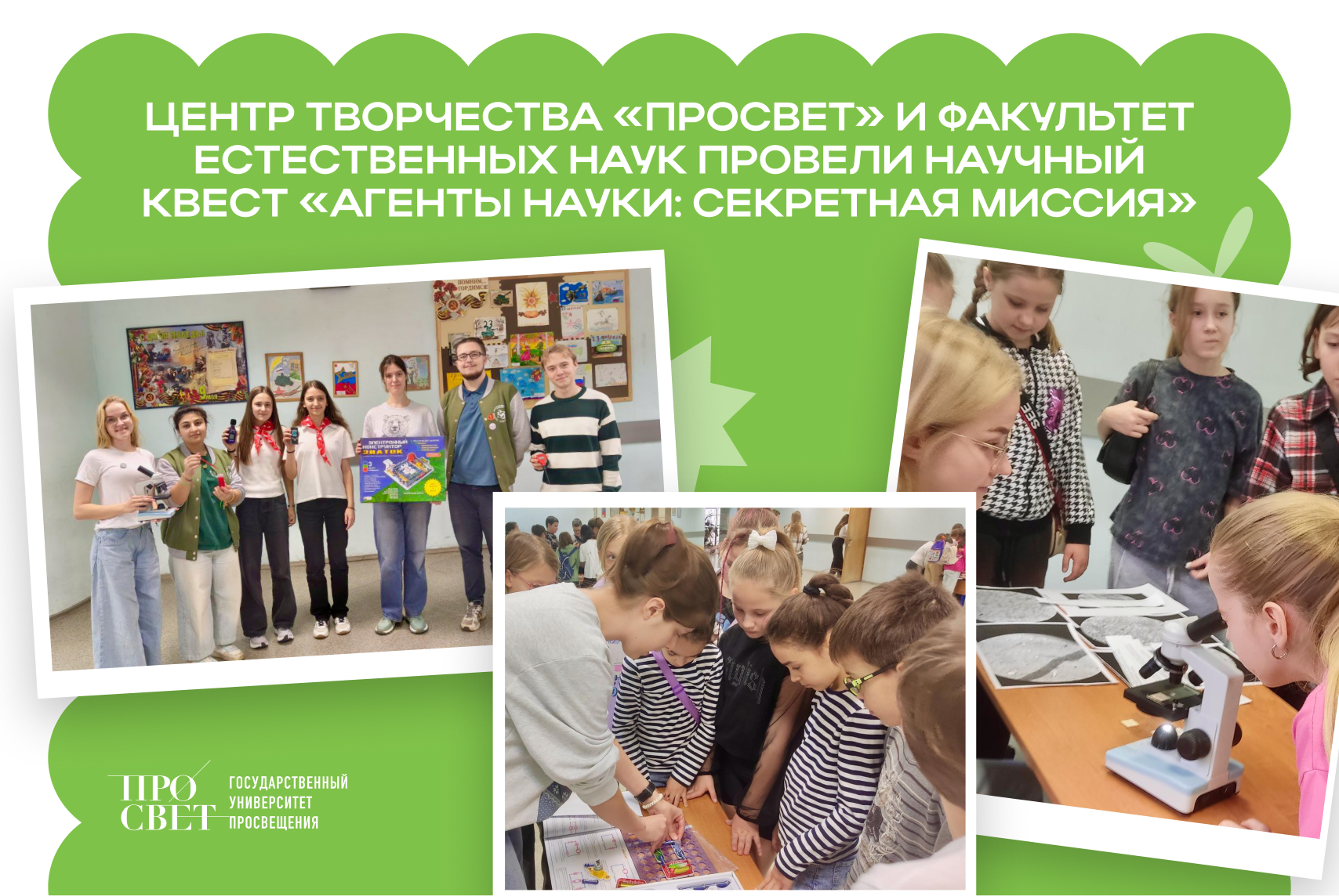 Центр творчества «ПРОСВЕТ» совместно с факультетом естественных наук провели масштабный квест «Агенты науки: Секретная миссия» в школе №10 имени Анатолия Константиновича Астрахова.