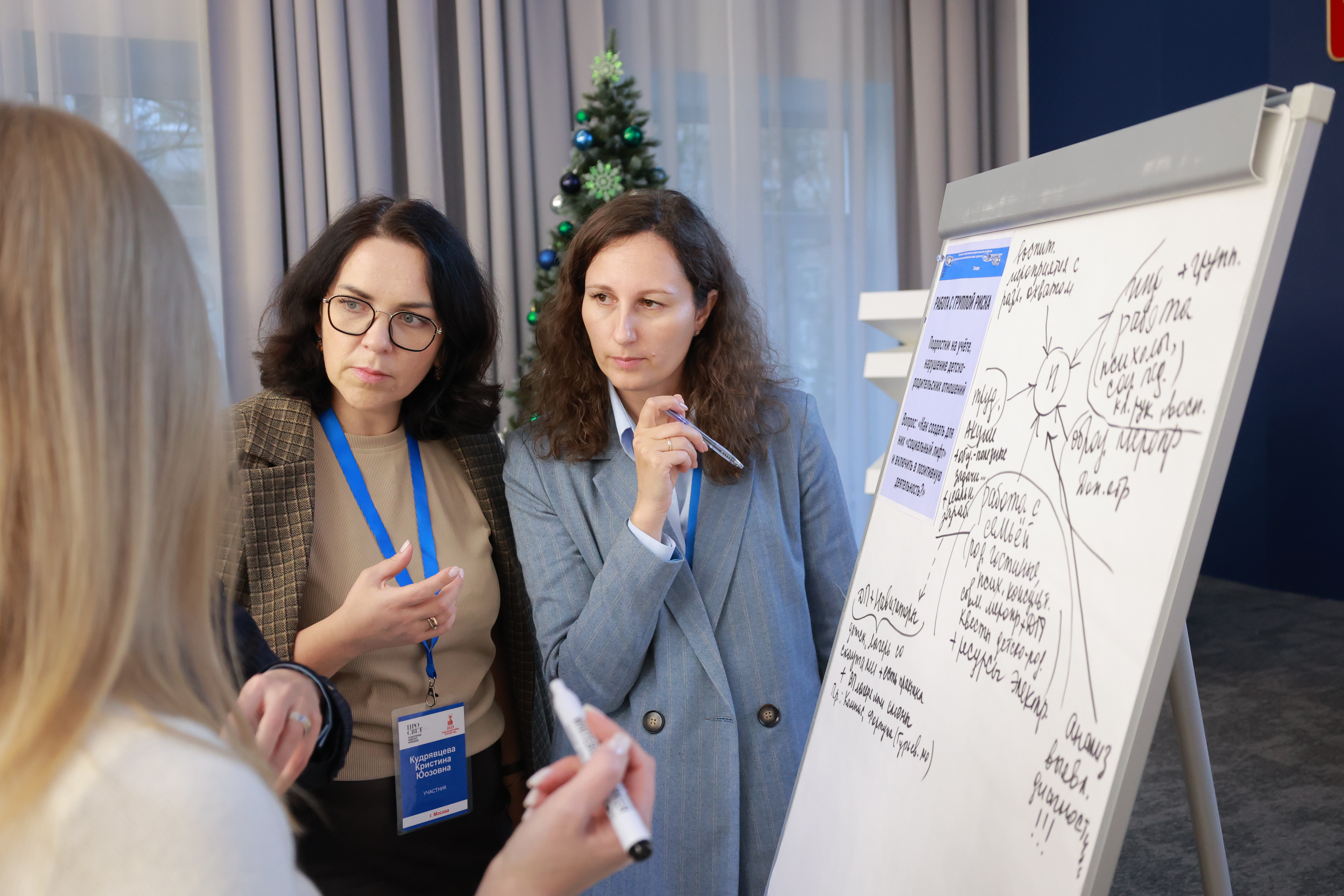 Программу дня продолжила проектная мастерская «Возникновение командного интеллекта: как личная эффективность трансформируется в коллективный результат». Занятие дополнил игровой брифинг «Региональная команда для достижения воспитательных результатов», позволивший в интерактивном формате обсудить механизмы совместной работы.