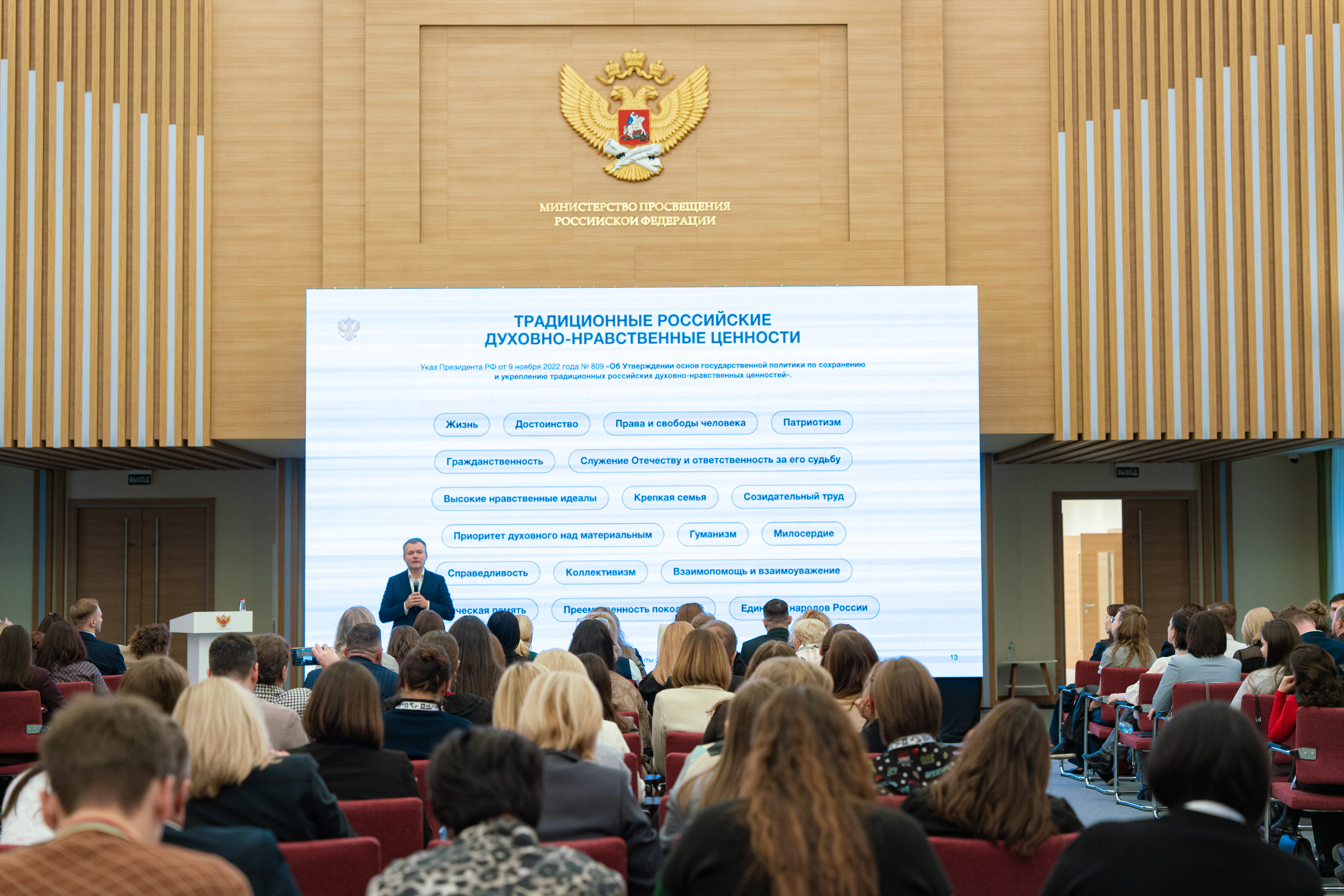 Перед участниками выступил глава ведомства Сергей Сергеевич Кравцов, отметив, что современная система образования продолжает лучшие методики и инструменты, разработанные в советские годы: