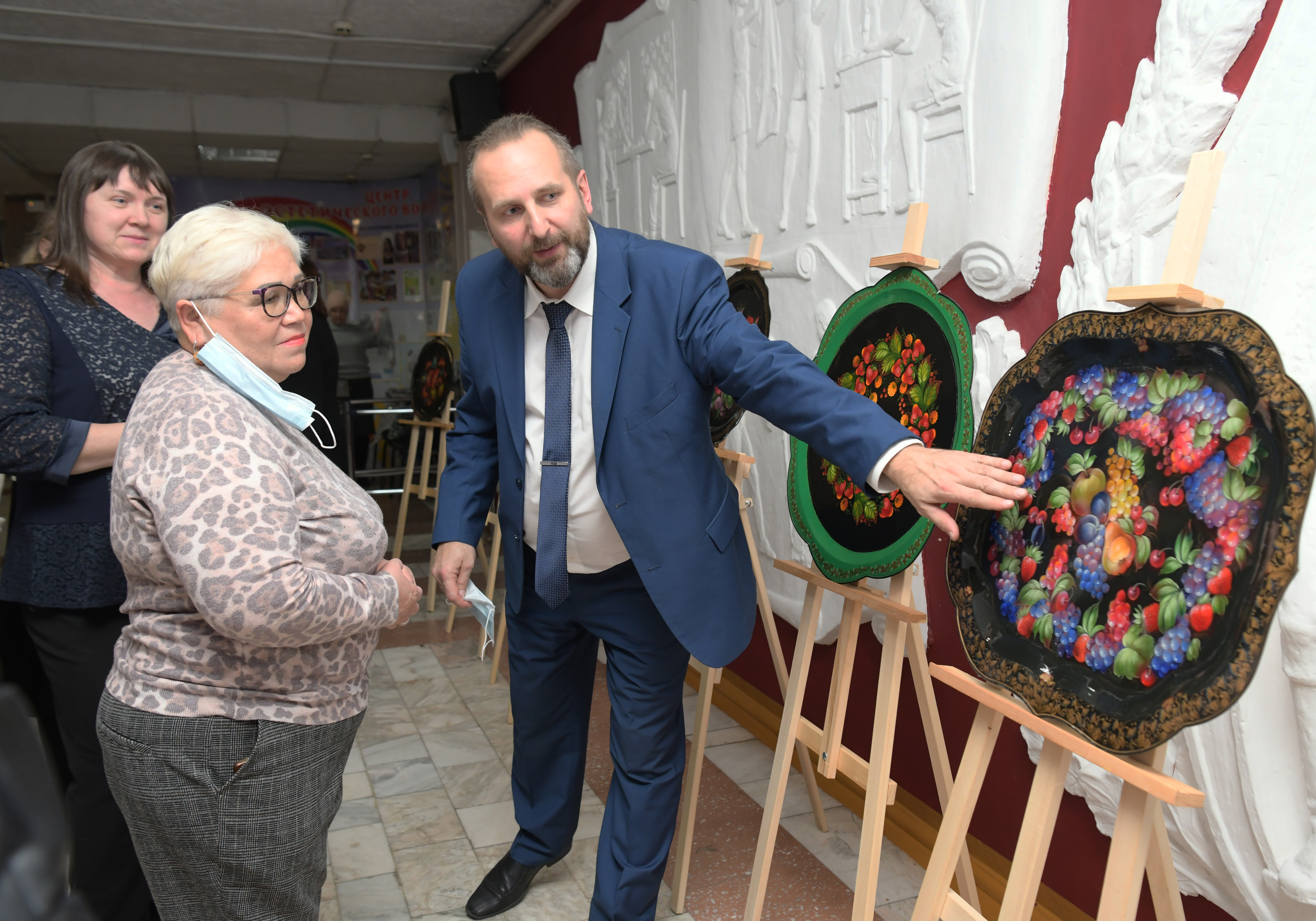 Посетители увидели подносы, выполненные в технике Жостовской декоративной росписи, которой в этом году исполнилось 200 лет!
