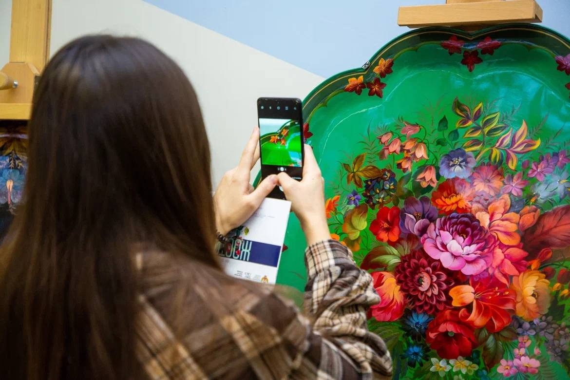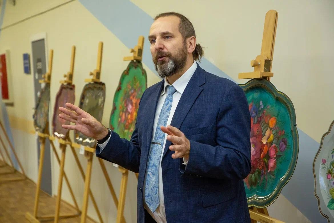 На церемонии открытия декан факультета изобразительного искусства и народных ремёсел Павел Дмитриевич Чистов погрузил в историю жостовской росписи и рассказал об особенностях техники живописи!