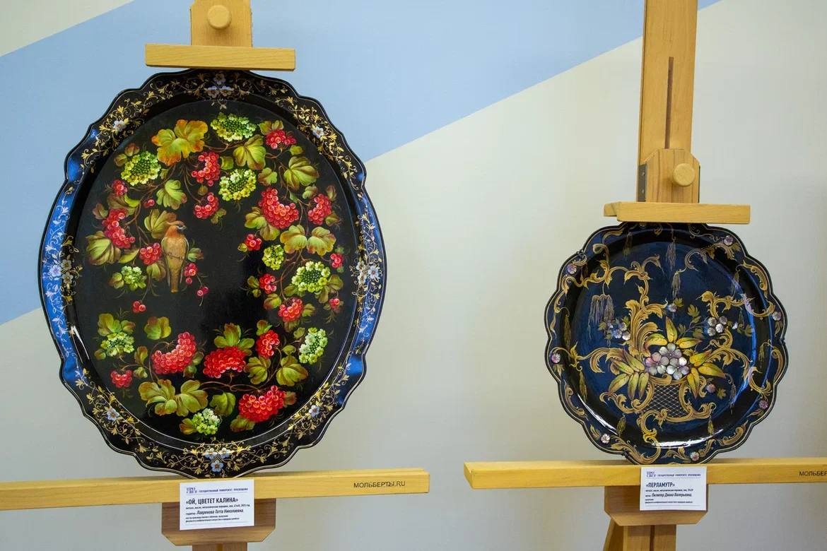 Передвижная выставка приурочена к 200-летию Жостовской фабрики декоративной росписи. На ней представлены подносы, расписанные, в оригинальной художественной манере с характерными цветочными композициями. Авторы работ — студенты Университета.