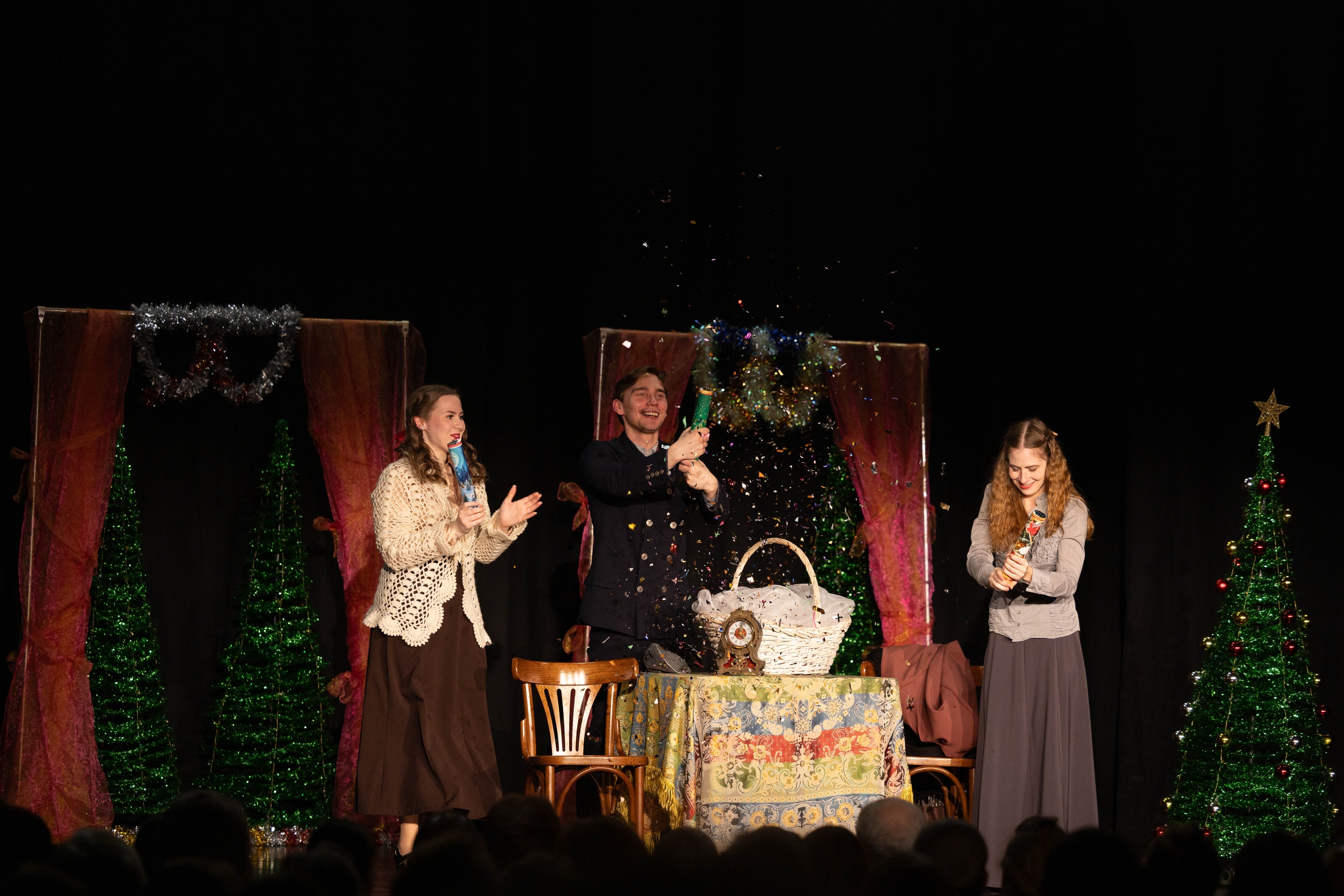 29 декабря в театре «Меридиан» состоялась премьера пьесы‑сказки студенческого театра «ПРОСВЕЩЕНИЕ» «За три часа до Нового года» — произведения Марии Лялиной, студентки факультета романо-германских языков Государственного университета просвещения.