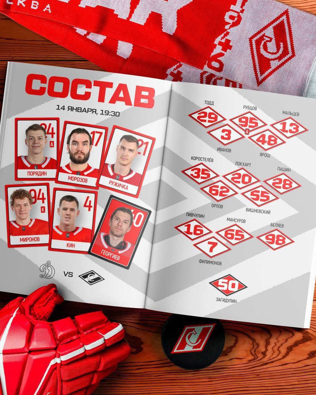 Наш спортсмен вышел на лёд вместе с сильнейшими игроками «Спартака» Андреем Мироновым, Адамом Ружичкой, Даниилом Пивчулиным, Демидом Мансуровым и многими другими.