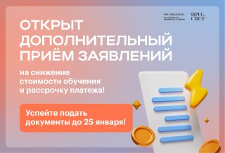В Государственном университете просвещения открыт дополнительный приём заявлений на снижение стоимости обучения и рассрочку или отсрочку платежа.