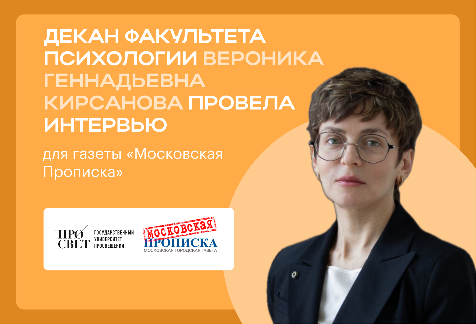Декан факультета психологии Государственного университета просвещения, кандидат психологических наук Вероника Геннадьевна Кирсанова провела интервью для газеты «Московская Прописка».