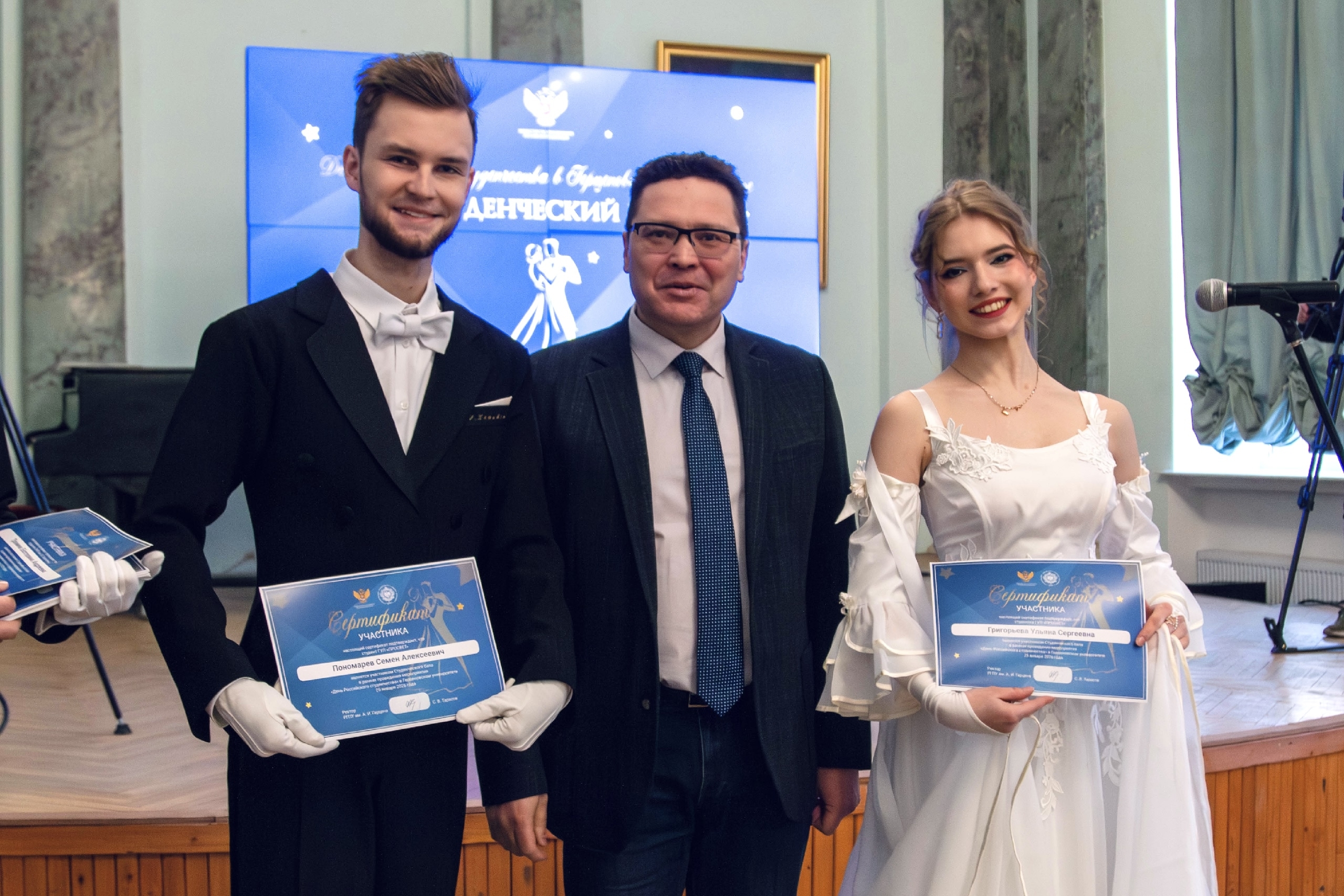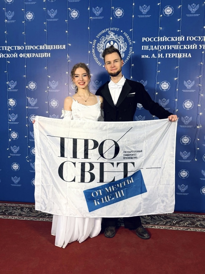 Студенты медицинского факультета Ульяна Григорьева и Семён Пономарёв представили Государственный университет просвещения на студенческом балу педагогических вузов России в РГПУ имени А. И. Герцена, приуроченном ко Дню российского студенчества 🎉