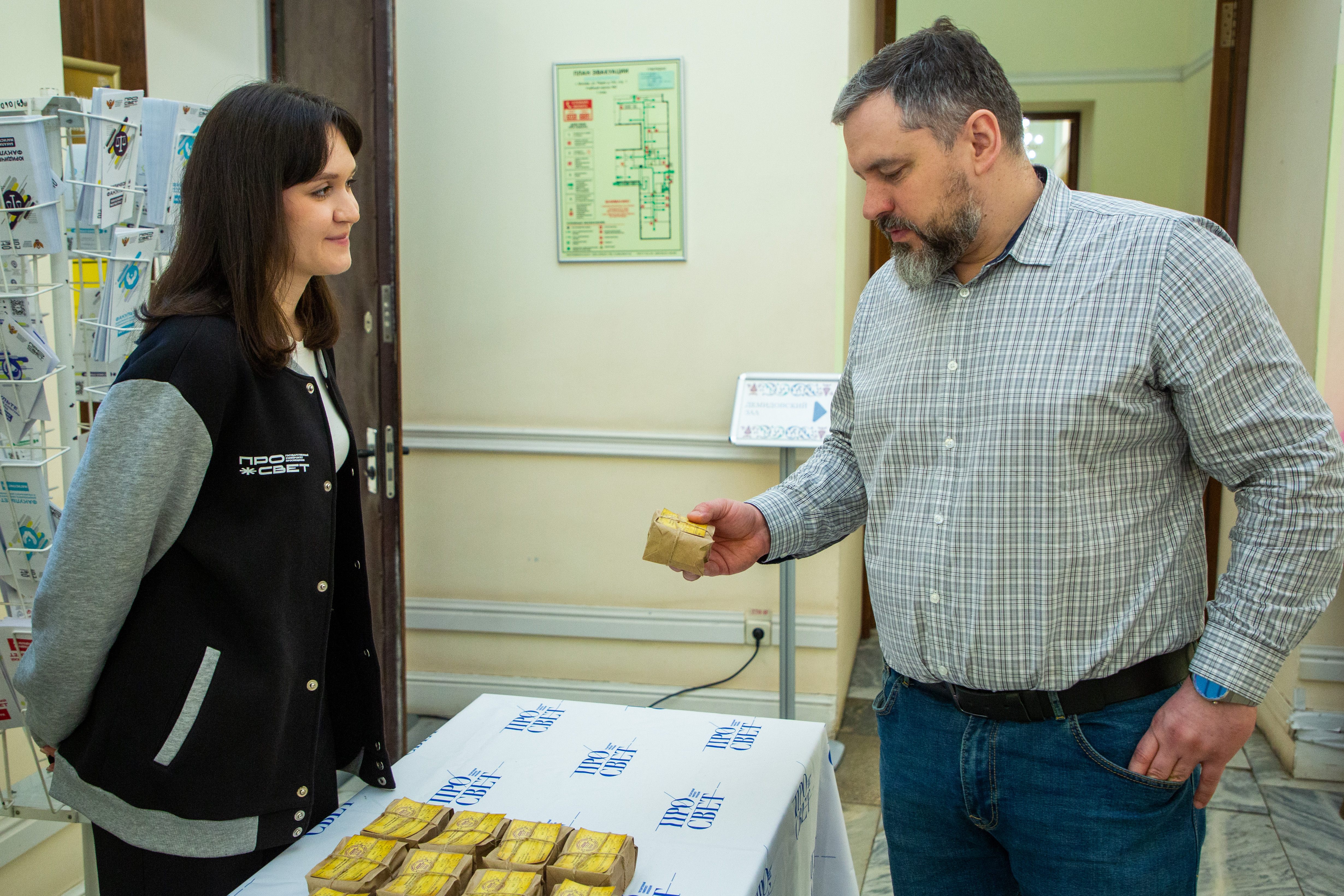 Студентам, преподавателям и сотрудникам Просвета активисты раздали по 125 граммов хлеба — это минимальная ежедневная норма, которую получали жители осаждённого города в январе 1942 года.