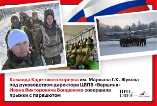 Команда Кадетского корпуса им. Маршала Г.К. Жукова под руководством директора ЦВПВ «Вершина» Ивана Викторовича Бондюкова совершила прыжки с парашютом