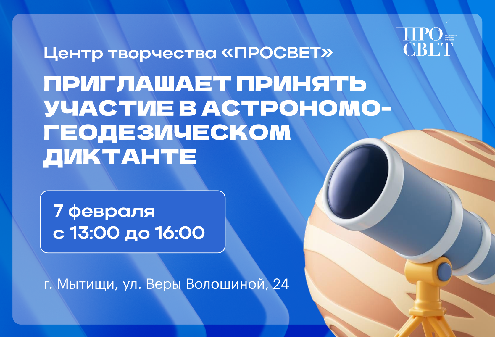 В преддверии Дня российской науки Центр Творчества «ПРОСВЕТ» приглашает принять участие в Астрономо-геодезическом диктанте.