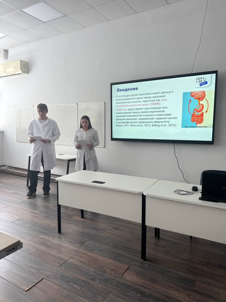 «Нейротрансмиттеры и микробиом кишечника» (Екатерина Иосифова, Никита Шарапов) – исследование было посвящено актуальной теме оси «кишечник-мозг». Было показано, как кишечная микробиота напрямую влияет на синтез ключевых нейромедиаторов (серотонина, ГАМК, дофамина), участвуя в регуляции настроения, пищевого поведения и когнитивных функций, что открывает новые перспективы для коррекции психических и неврологических расстройств.