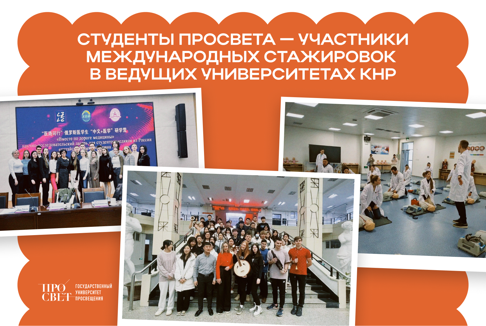Студенты Государственного университета просвещения ещё во время обучения могут попробовать себя в роли педагогов и учёных! Они проходят стажировки в ведущих университетах Китайской Народной Республики: Шаньдунском первом медицинском университете, Муданьцзянском педагогическом университете и других.