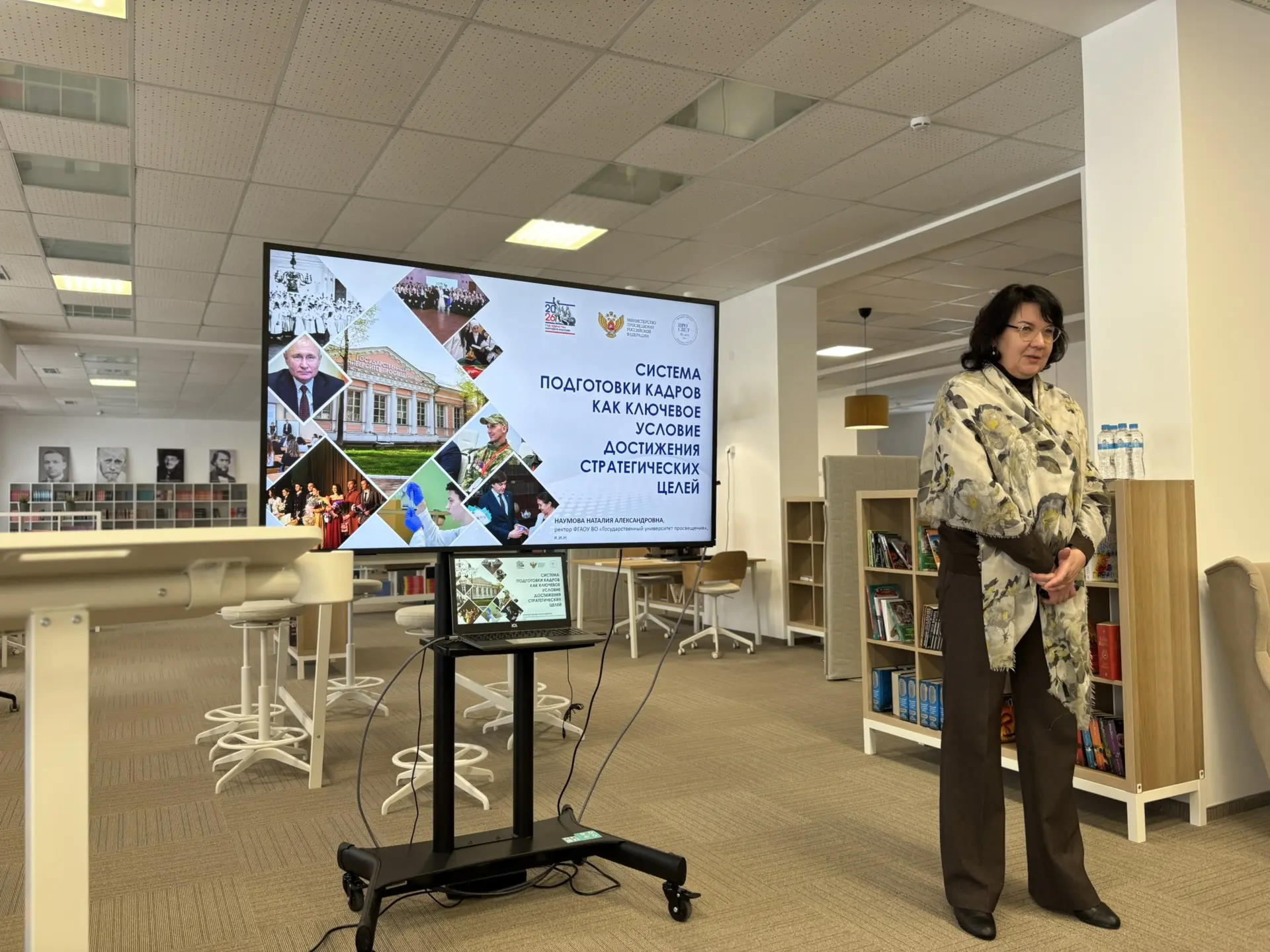 На площадке школы № 58 слушатели встретились с ректором Государственного университета просвещения Наталией Наумовой. Ее лекция, посвященная системе подготовки кадров как ключевому условию достижения стратегических целей России, задала смысловой вектор для размышлений о будущем российского образования и роли управленца в его развитии.