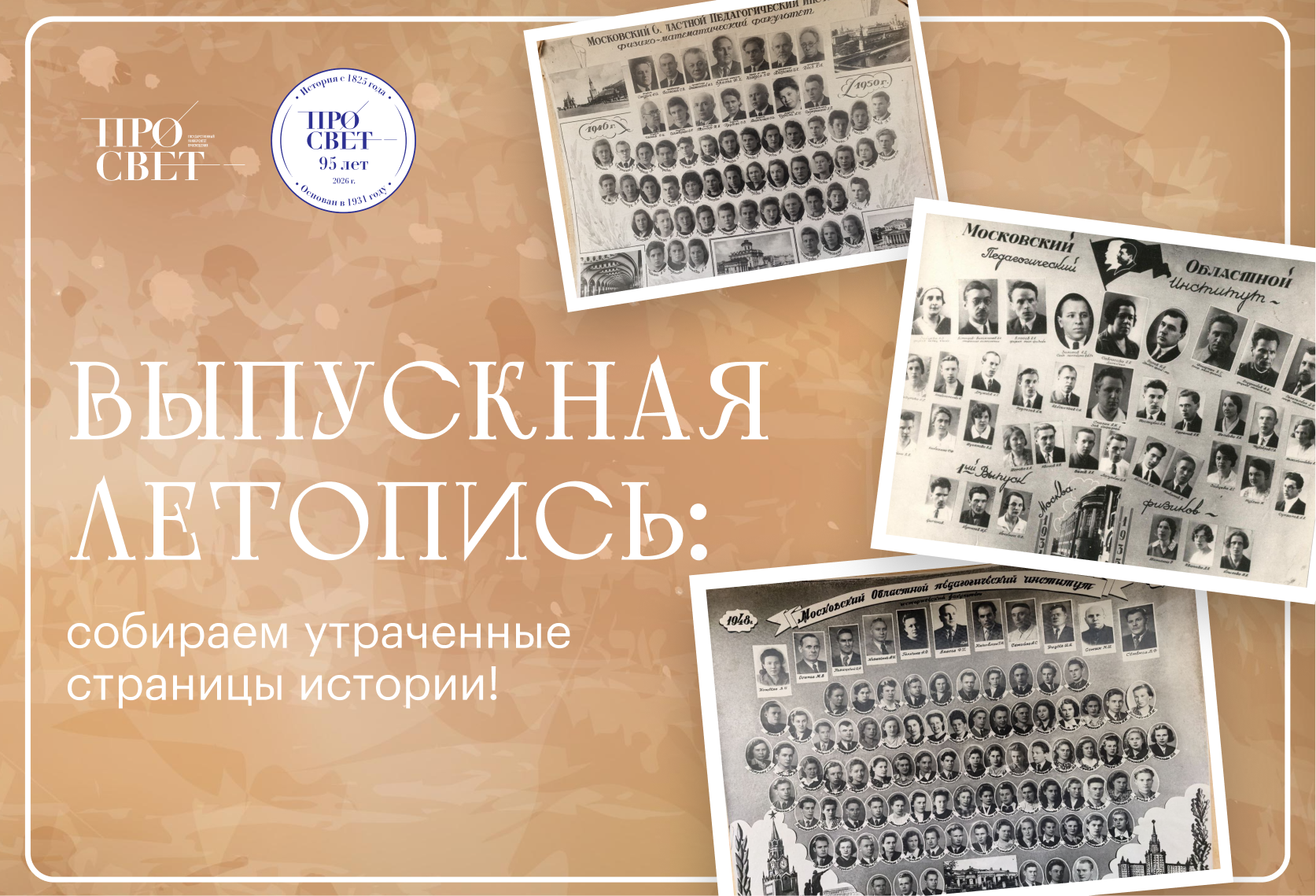К 95-летию Государственного университета просвещения Музей истории Просвета запускает акцию по сбору выпускных фотографий всех поколений студентов.