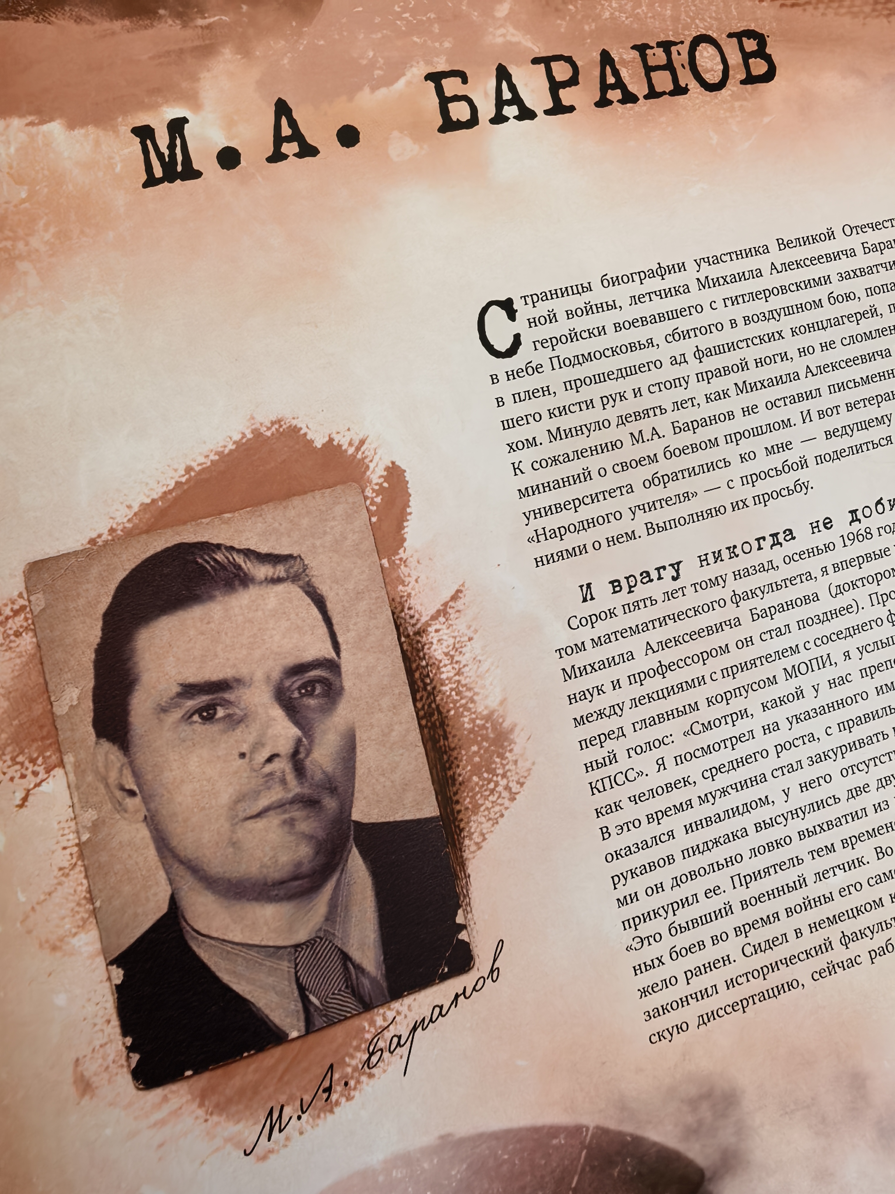 - Михаиле Алексеевиче Баранове — примере стойкости и силы духа.