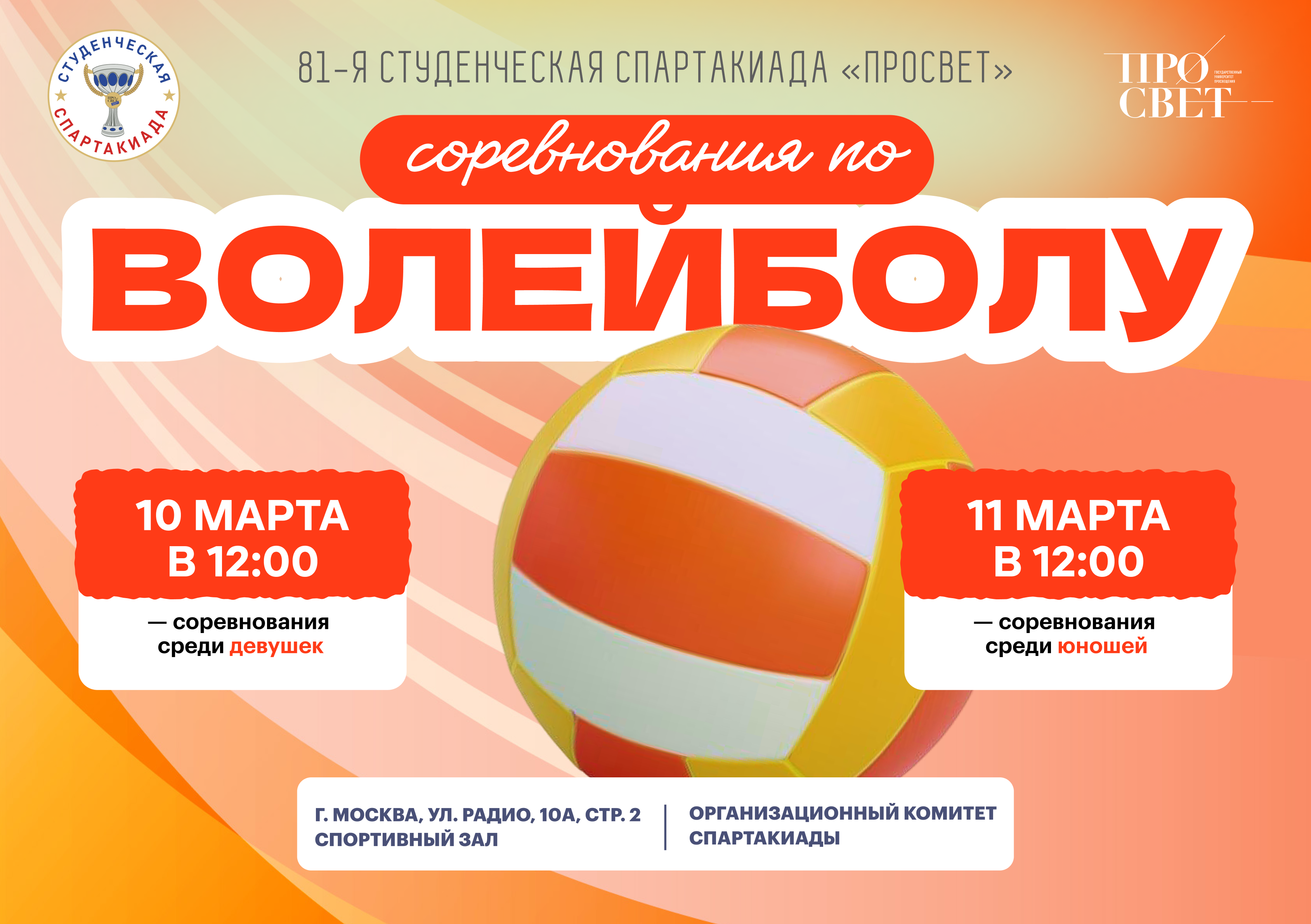 81-ая студенческая Спартакиада «ПРОСВЕТ» продолжается! В её рамках в Государственном университете просвещения пройдут соревнования по волейболу: