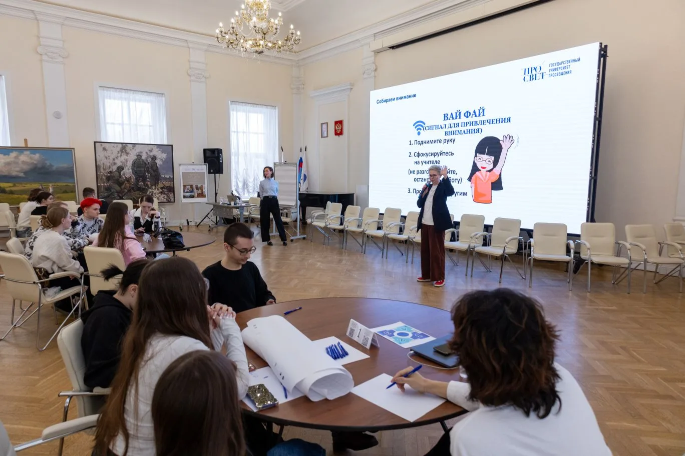 В Демидовском зале прошёл тренинг «Методический практикум». Тренер по педагогическому и ораторскому мастерству Мария Евгеньевна Ахапкина и специалист по проектированию образовательного опыта Анна Константиновна Резникова разобрали инструменты креативной педагогики и нейробиологии обучения.