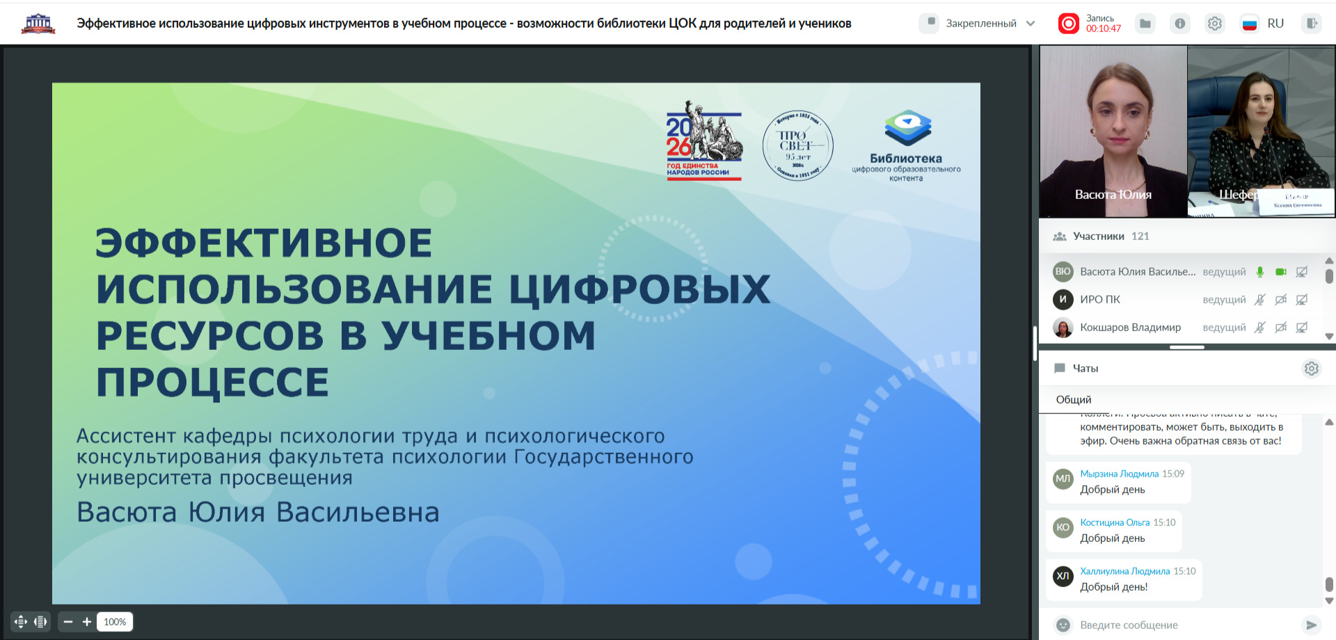 5 марта Государственный университет просвещения совместно с Институтом развития образования Пермского края провели значимый вебинар «Эффективное использование цифровых инструментов в учебном процессе: возможности Библиотеки ЦОК для родителей и учеников». Мероприятие стало крупной экспертной площадкой для обсуждения роли современных цифровых ресурсов в системе школьного образования и их значения для эффективного взаимодействия семьи и школы.