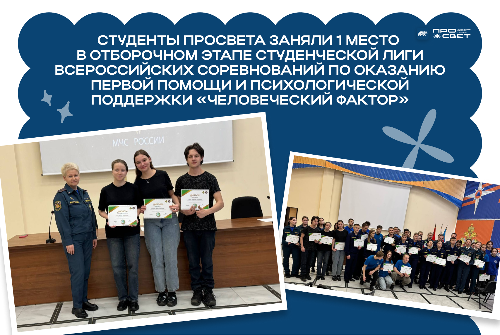 Ребята продемонстрировали высокий уровень знаний и навыков в области первой помощи и психологической поддержки. Просвет гордится нашими студентами и желает удачи на следующем этапе соревнований!
