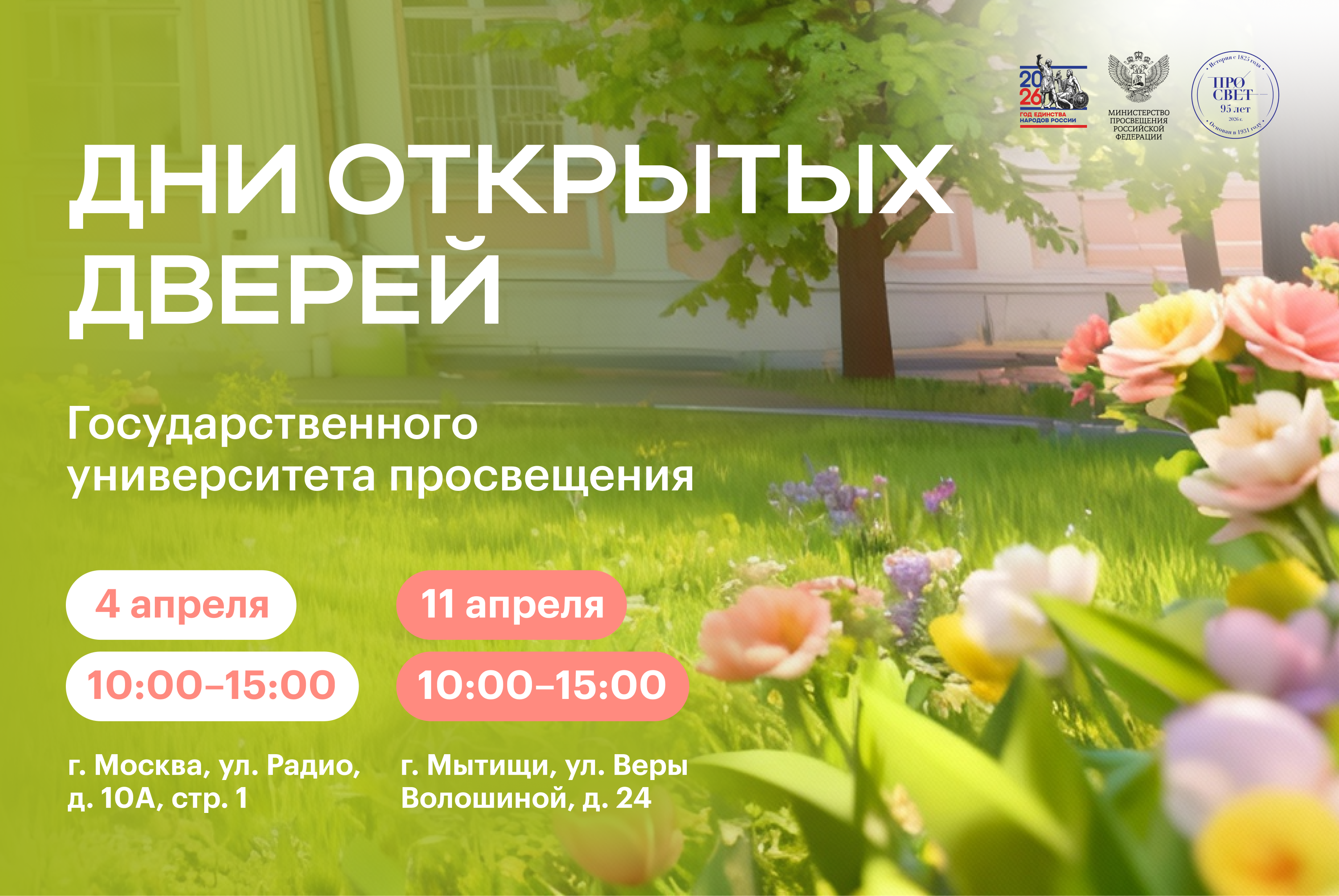 В апреле Просвет распахнёт свои двери для абитуриентов! Приглашаем вас посетить Дни открытых дверей Государственного университета просвещения.