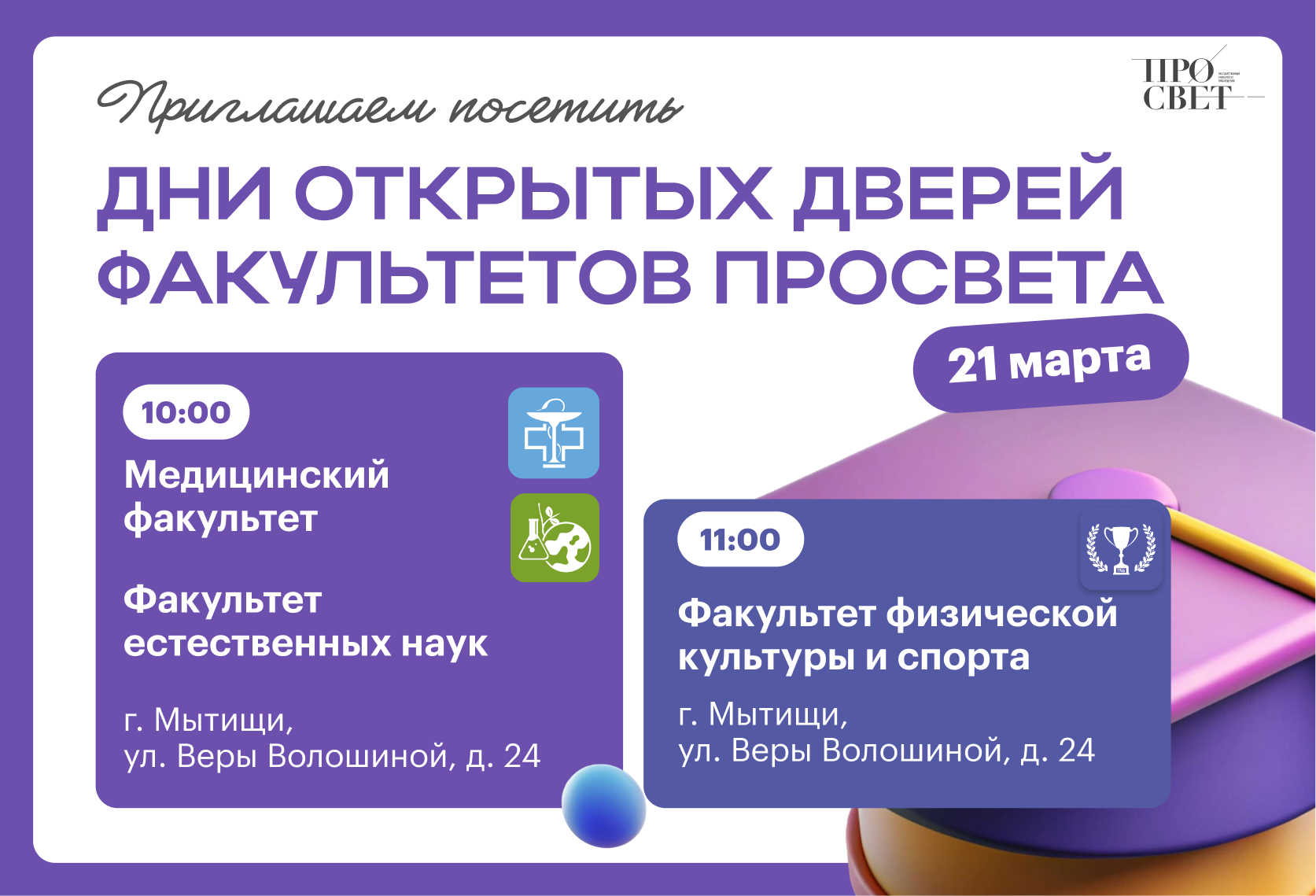 Поступай правильно — поступай в Просвет!