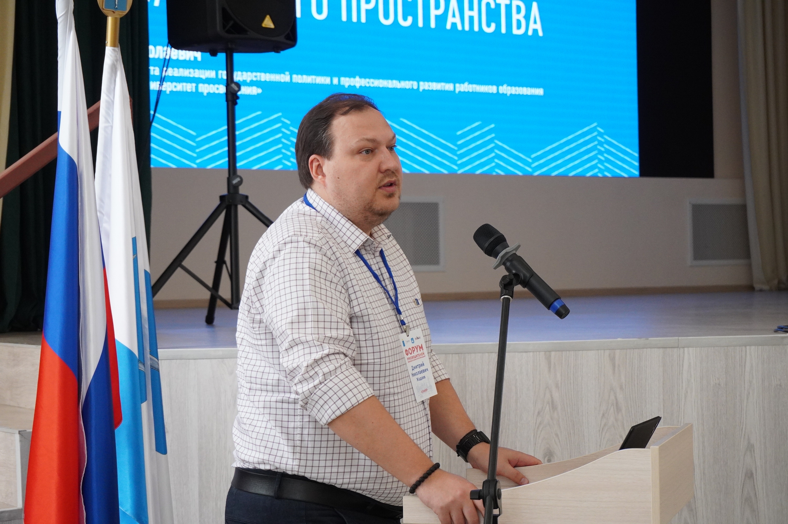 В пленарной части форума выступил заместитель директора Института реализации государственной политики и профессионального развития работников образования Просвета Дмитрий Жадаев. Эксперт обозначил ключевые компоненты формирования единого образовательного пространства, представил ресурсы и проекты Просвета, разработанные в помощь педагогическим работникам школ и детских садов, а также рассказал о реализуемых университетом программах повышения квалификации.