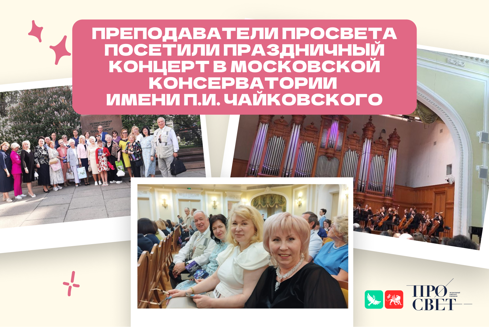 Лето началось с яркого аккорда для преподавателей лингвистического и факультета романо-германских языков. Руководители предметных ассоциаций учителей иностранных языков побывали на праздничном концерте в Большом зале Московской консерватории им. П.И. Чайковского. Он был посвящён Дню защиты детей.Классической музыкой вдохновились: Ирина Олеговна Мазирка; Ирина Александровна Краснова; Игорь Владимирович Скуратов.В мероприятии участвовала президент Ассоциации «Учителя Подмосковья» Лидия Николаевна Антонова и члены Общественного совета педагогов Подмосковья.Для зрителей прозвучали произведения выдающихся русских композиторов в исполнении симфонического оркестра «Академия Русской музыки».Гости апдодировали шедеврам Петра Ильича Чайковского, Михаила Ивановича Глинки, Николая Андреевича Римского-Корсакова и музыке именитого Иоганна Штрауса! Нескончаемые овации вызвал знаменитый «Полёт шмеля», яркие «Половецкие пляски», нежный «Вальс цветов» и другие известные произведения Музыка всегда вдохновляет на новые профессиональные, педагогические и научные свершения! #ПРОСВЕТ_ЛФ #ПРОСВЕТ_ФРГЯ #ГосударственныйУниверситетПросвещения