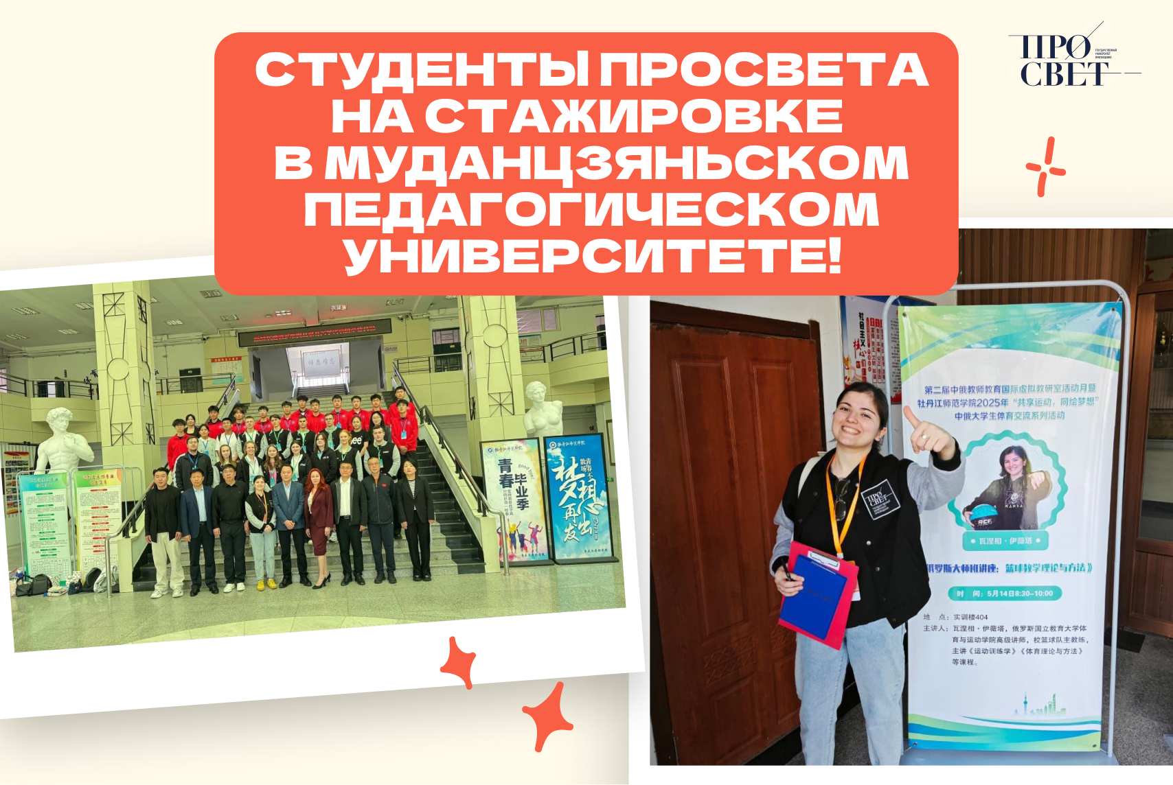 Прямо сейчас наша команда находится в Китае! Стажировка в Муданцзяньском педагогическом университете — уникальная возможность для профессионального и личностного роста! Студенты факультета физической культуры и спорта уже успели познакомиться с руководством вуза и посетить факультет физической культуры и здоровья. На симпозиуме состоялся активный обмен мнениями между сотрудниками и студентами: обсуждались программы стажировки; особенности обучения в КНР; перспективы сотрудничества между нашими странами и университетами.Впереди у ребят две недели насыщенных мероприятий: занятия по различным видам спорта; экскурсии по музеям вуза; командные соревнования; увлекательные мастер-классы. Стажировка — важный вклад в развитие международного сотрудничества и науки! #ПРОСВЕТ_ФФКиС #ГосударственныйУниверситетПросвещения