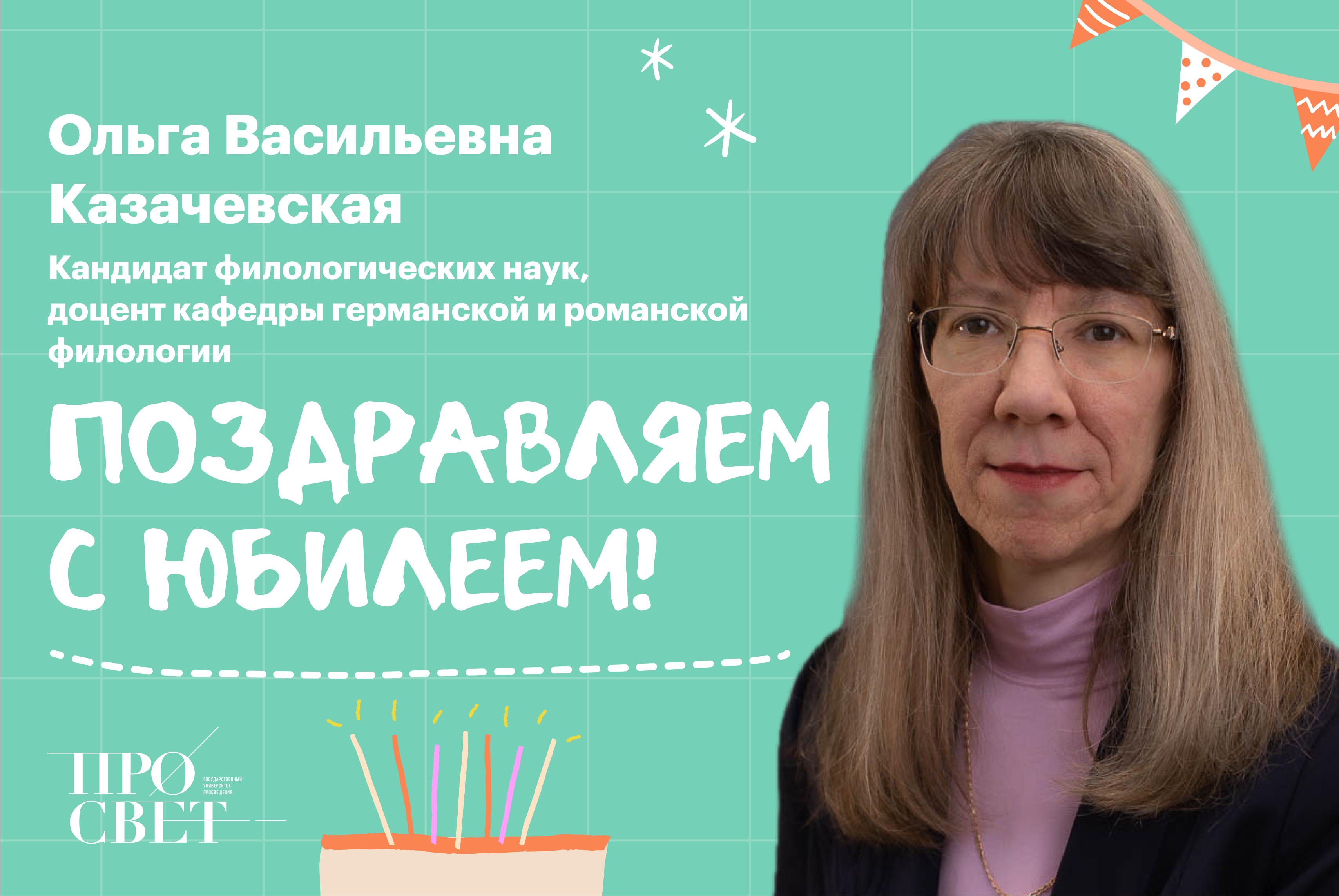Сегодня свой юбилей отмечает кандидат филологических наук, доцент кафедры германской и романской филологии Ольга Васильевна Казачевская. Более 25 лет она работает в университете. Для неё это родной дом, так как Ольга Васильевна является выпускницей университета, училась она на факультете романо-германских языков. В 2003 году Ольга Васильевна с успехом защитила кандидатскую диссертацию, творчески проводит практическим занятия по немецкому языку как первому, так и второму языку, много лет читает базовый и серьёзный теоретический курс «Стилистика немецкого языка». Требовательная и вдумчивая, ответственная и дисциплинированная, в любой работе она пользуется заслуженным уважением коллектива преподавателей и студентов. Много лет Ольга Васильевна возглавляет олимпиадное движение на кафедре в области немецкого языка для школьников Московского региона, а в этом году с успехом провела студенческую Олимпиаду по немецкому языку российского статуса. Ольга Васильевна всегда с любовью и заинтересованностью проводит переводческие конкурсы для студентов факультета, так как это непосредственно связано с ее научными интересами, которые всегда отражаются в её учебных пособиях, необходимых для проведения современных и креативных занятий.Коллектив факультета от всей души поздравляет Ольгу Васильевну с юбилеем и желает новых высот в профессии педагога!