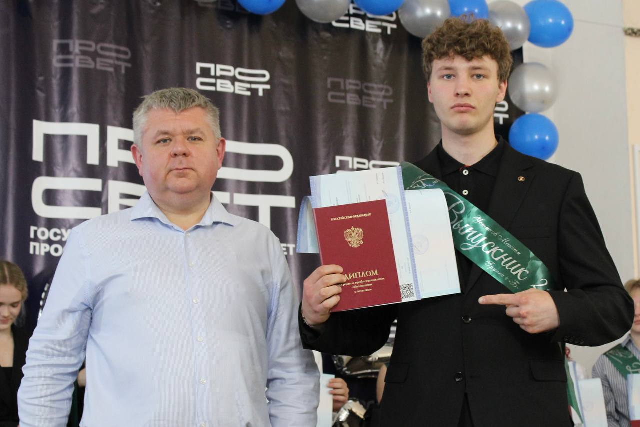Дорогие выпускники, примите мои искренние поздравления! Желаю вам крепкого здоровья, успехов в профессии, веры в себя и неиссякаемого энтузиазма. В добрый путь!» — обратился к залу Олег Васильевич.