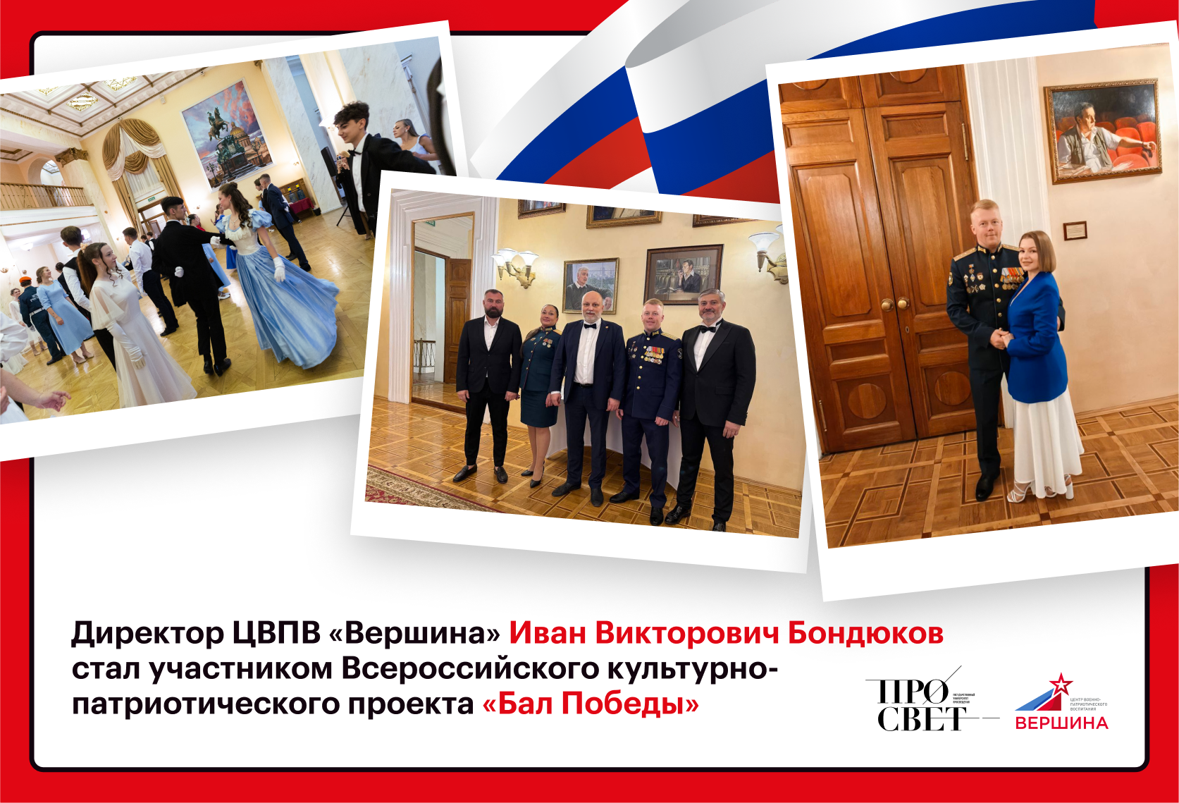 Бал Победы — масштабный культурно-патриотический проект, направленный на сохранение исторической памяти, укрепление преемственности поколений, формирование у молодёжи уважения к подвигу героев и осознанного выбора служения Отечеству!
