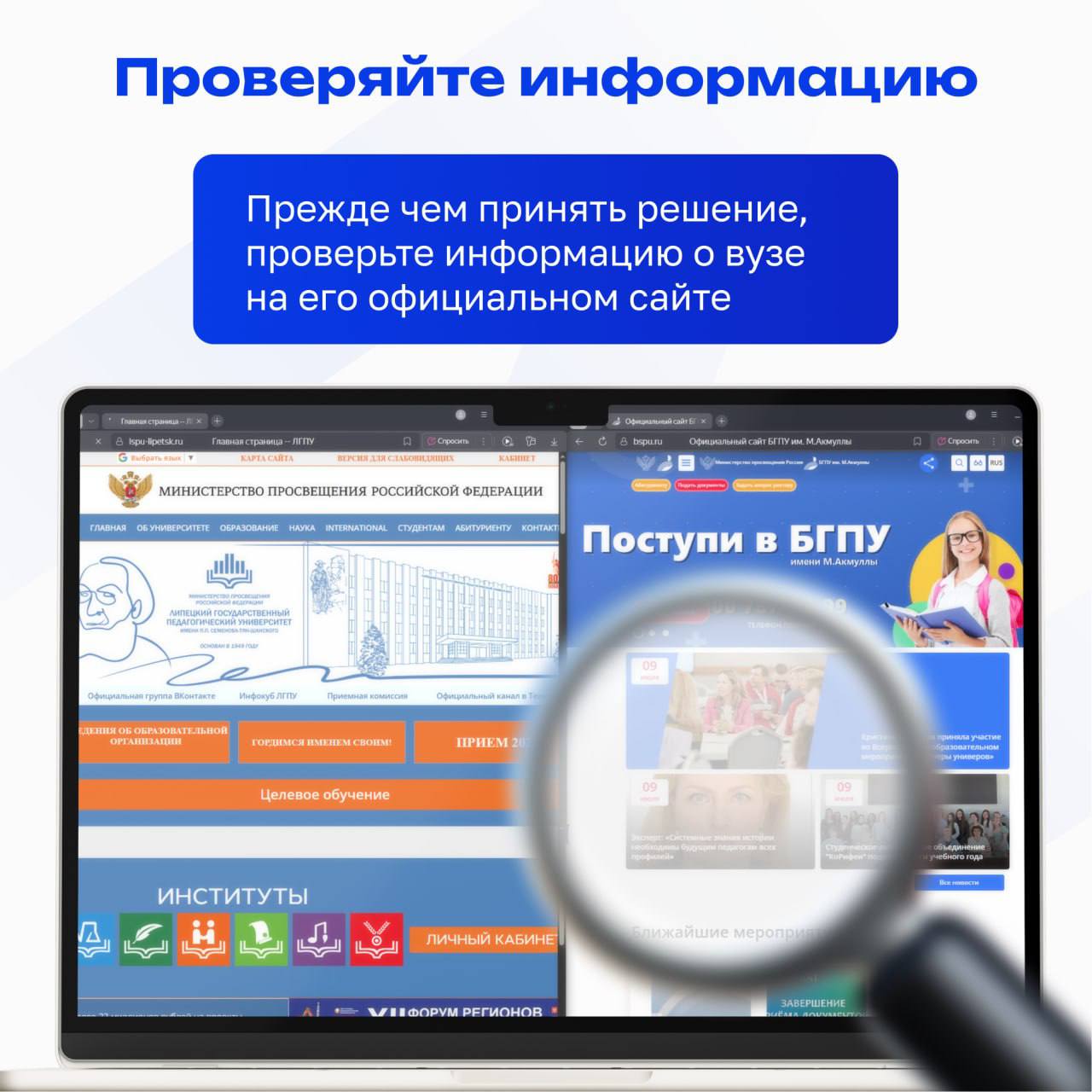 Помните, что в современном мире множество информационных источников с недостоверными данными. Поэтому важно быть внимательными и критически относиться к любой информации, связанной с образовательными программами, поступлением и условиями обучения.